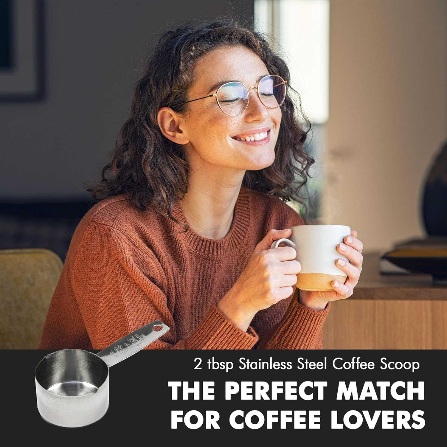 - Short and maneuverable handle fits into your bag or bin of coffee easily