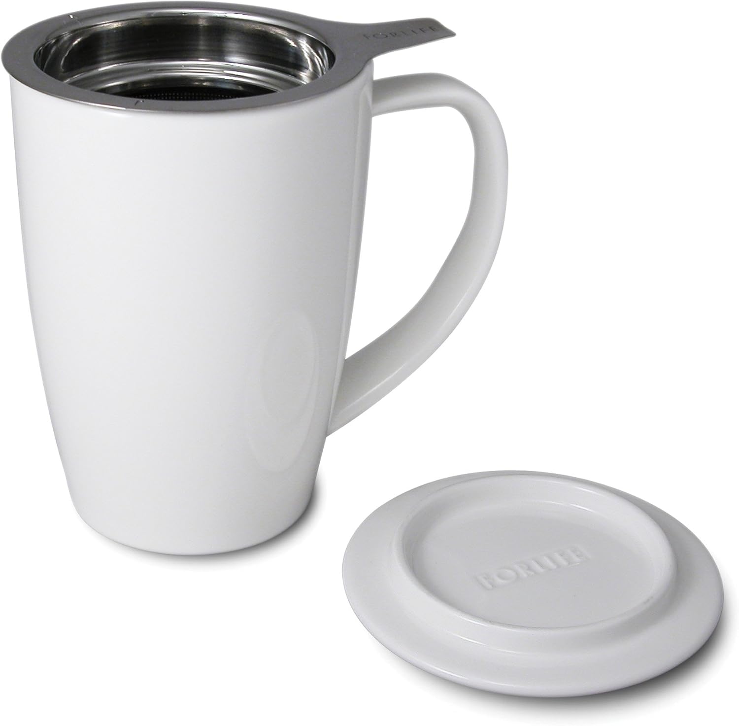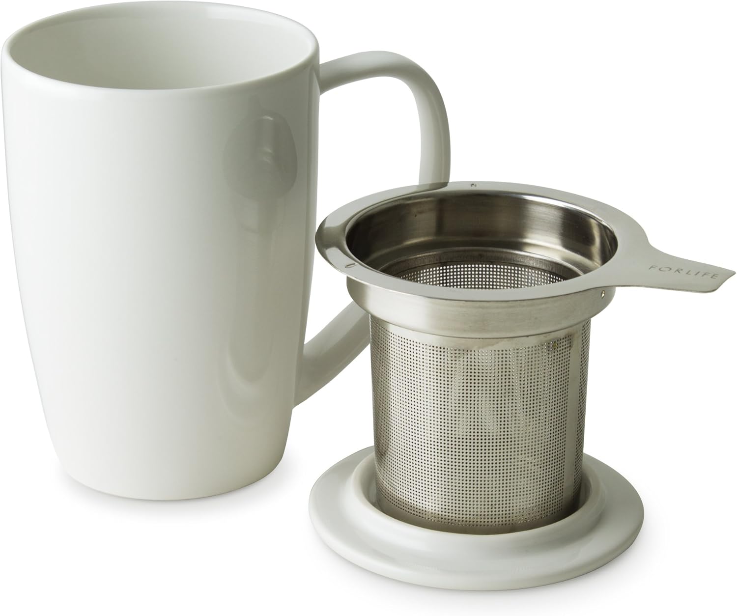 FORLIFE Curve Tall Tea Mug with Infuser and Lid 15 ounces, White