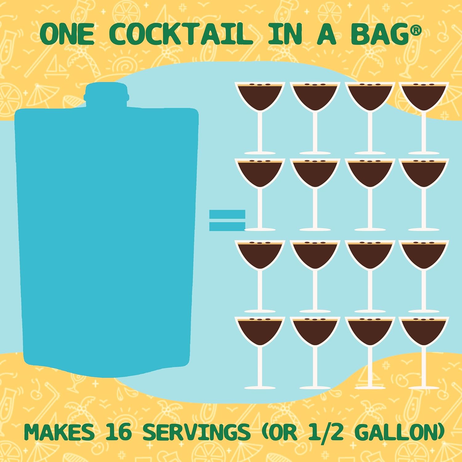 - Generous Serving Size: Our Mudslide cocktail mixer offers 16 servings per bag - that's a lot of mudslides! Perfect for those summer parties or family BBQs. Only want one serving? Just pop the cap back on and throw it in the freezer for later.