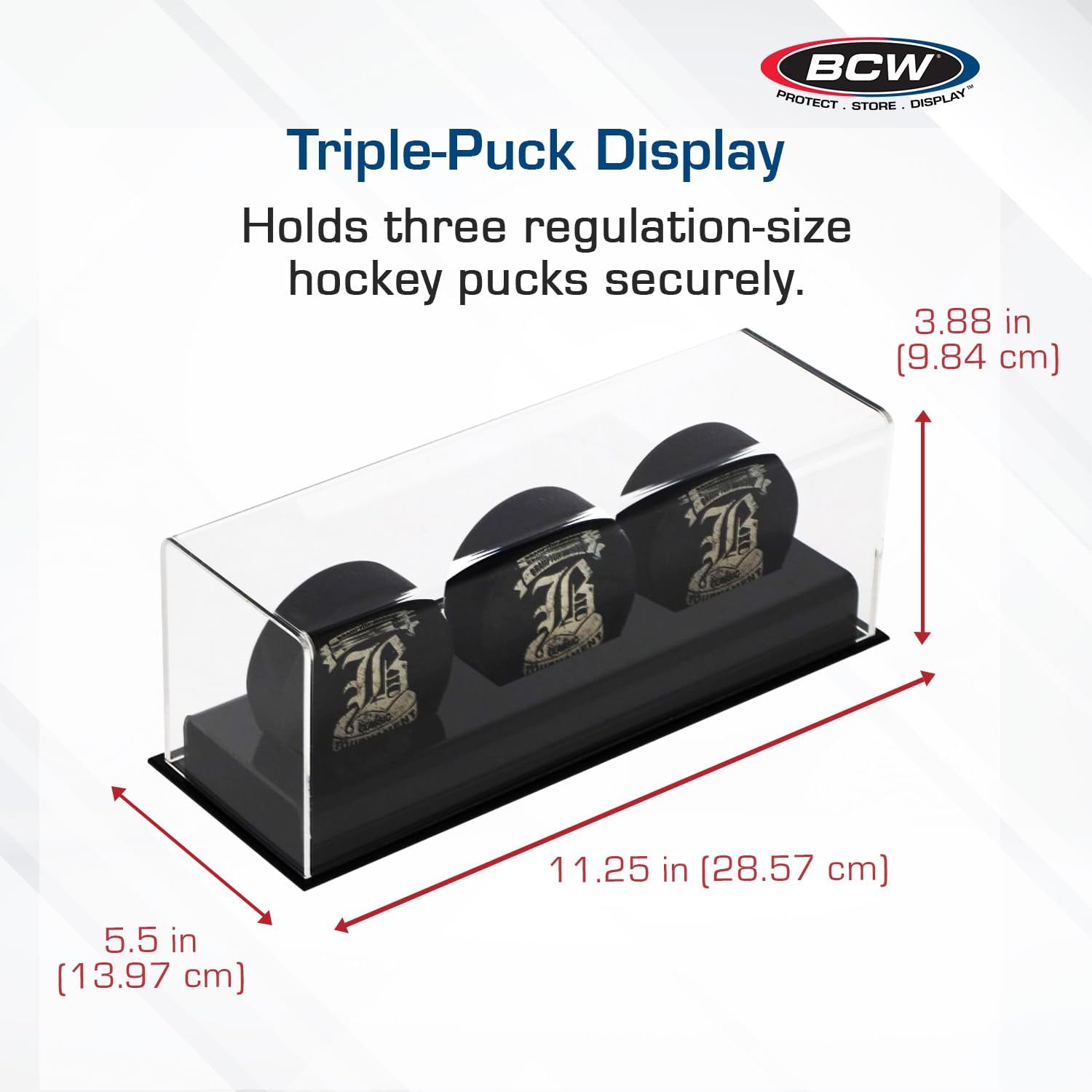 - PERFECT FIT FOR STANDARD PUCKS: Holds 3 regulation-sized hockey pucks securely; protects memorabilia from dust and damage