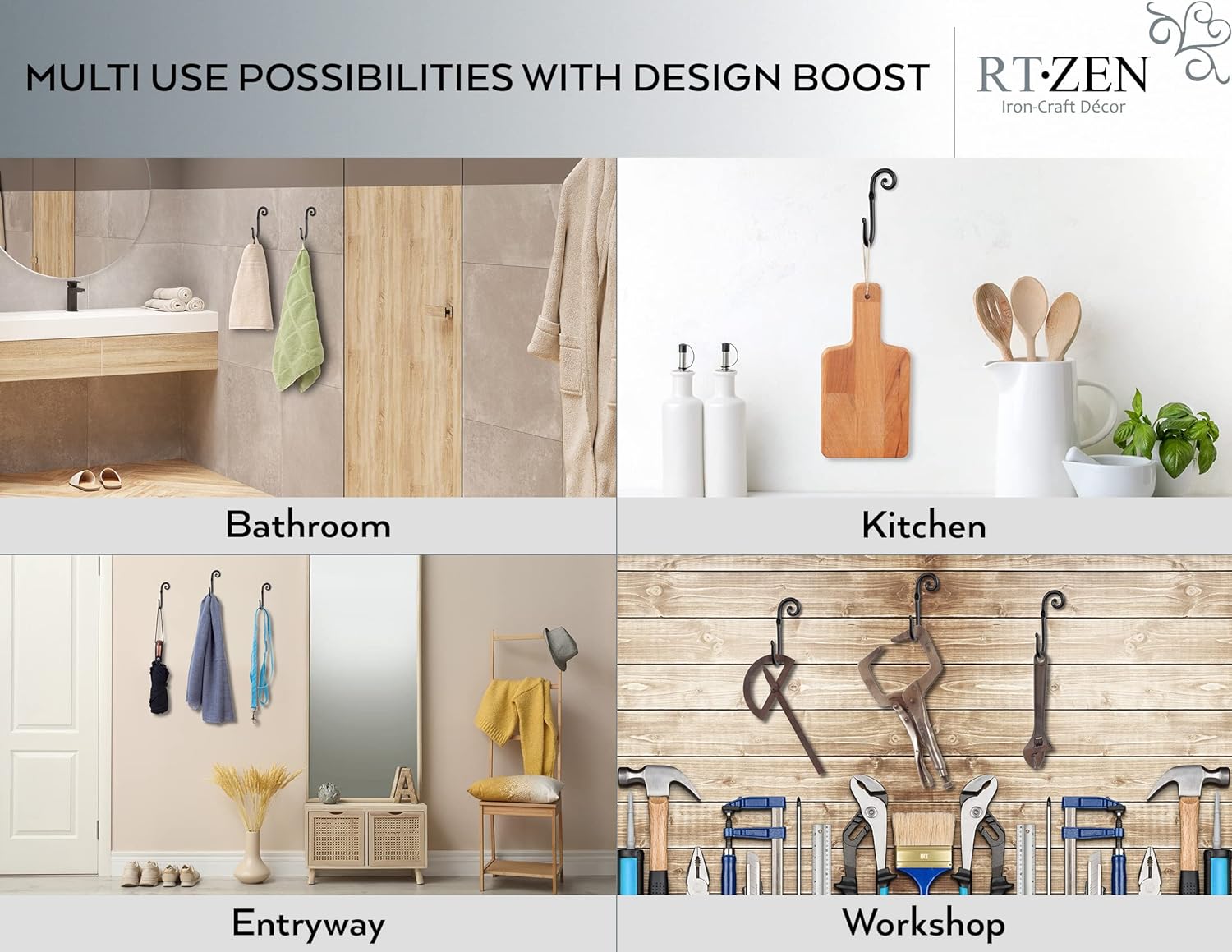 • EXCLUSIVE LIFETIME PEACE OF MIND - Handcrafted Metal Matte Boho Decorative Hooks for Any Home Aesthetic. Farm House Vintage or Modern Home Design. Smart Secure Vertical Storage Coat Rack Wall Mount & Display