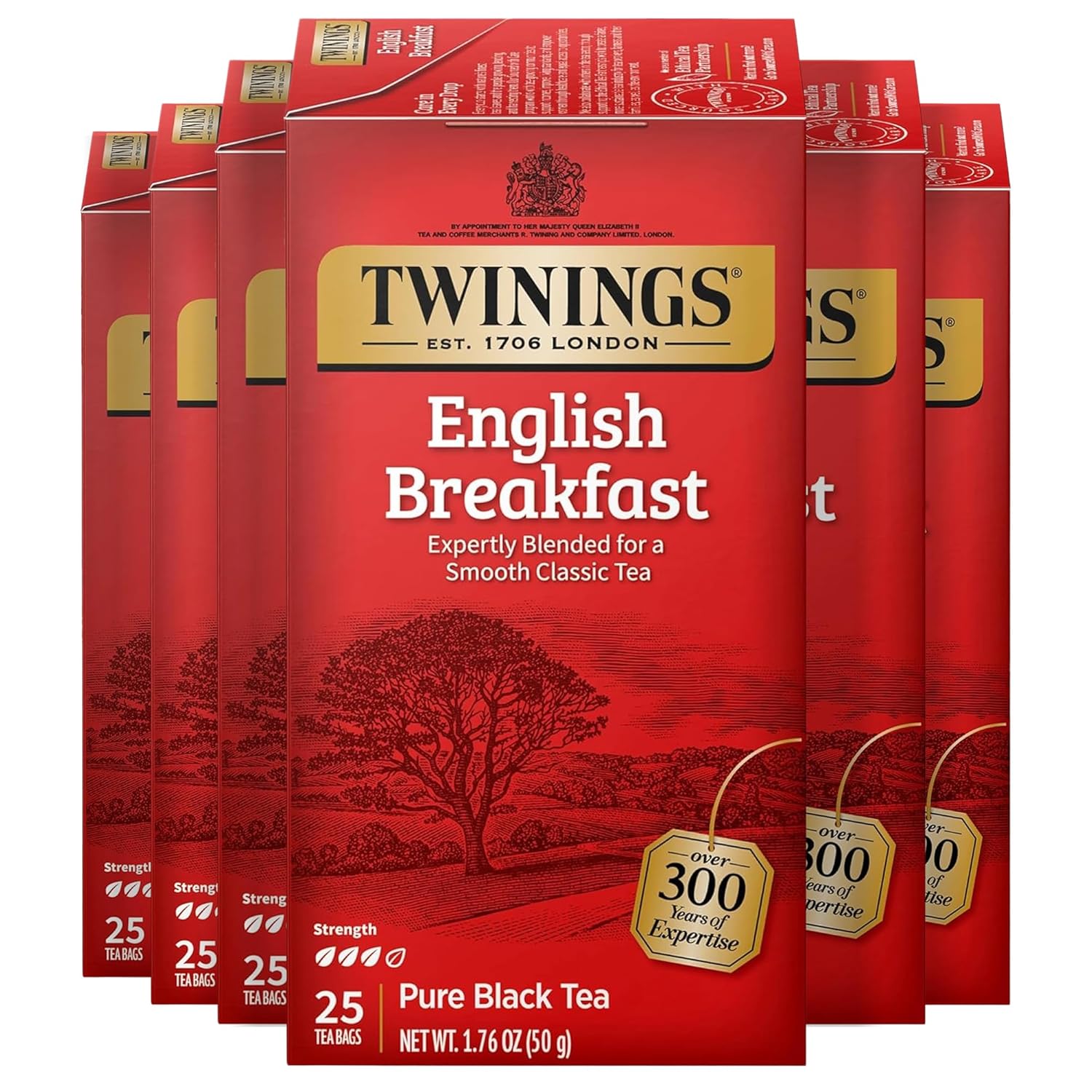 - TWININGS MOST POPULAR TEA: English Breakfast, created by selecting some of the finest teas, each with their own unique characteristics for a well-balanced blend; Caffeinated, 25 Count, Pack of 6