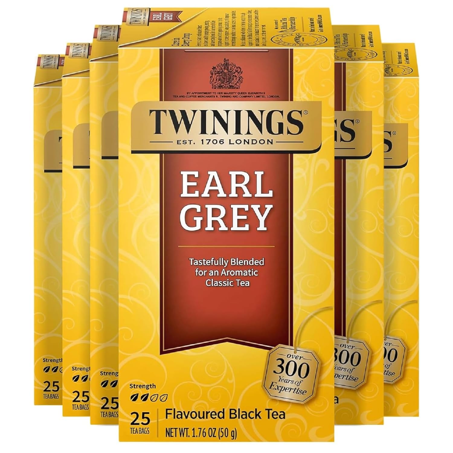 - CLASSIC BLACK TEA: Fresh, fragrant and flavoured with distinctive notes of citrus and bergamot, this Earl Grey tea has all the taste of the original; Caffeinated, 25 Count, Pack of 6
