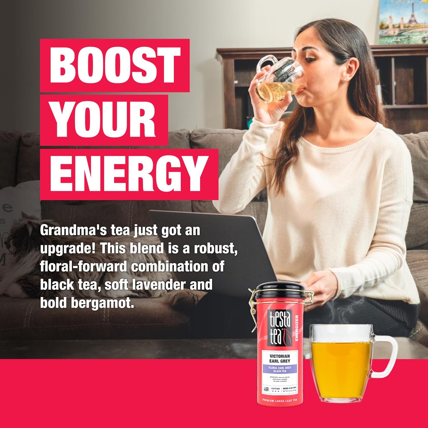 Tiesta Tea - Victorian Earl Grey, Loose Leaf, Floral Earl Grey Black Tea, Premium High Caffeinated Black Drink, Make Hot or Iced, Brews Up to 50 Cups, 4oz Refillable Tin