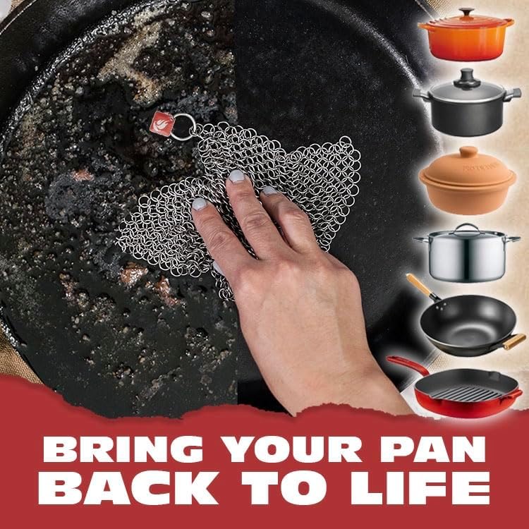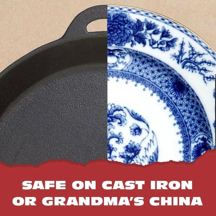 - Works on more than cast iron: bring your best pots and pans back to life - especially those grimy bottoms and sides - with your favorite kitchen cleaner.