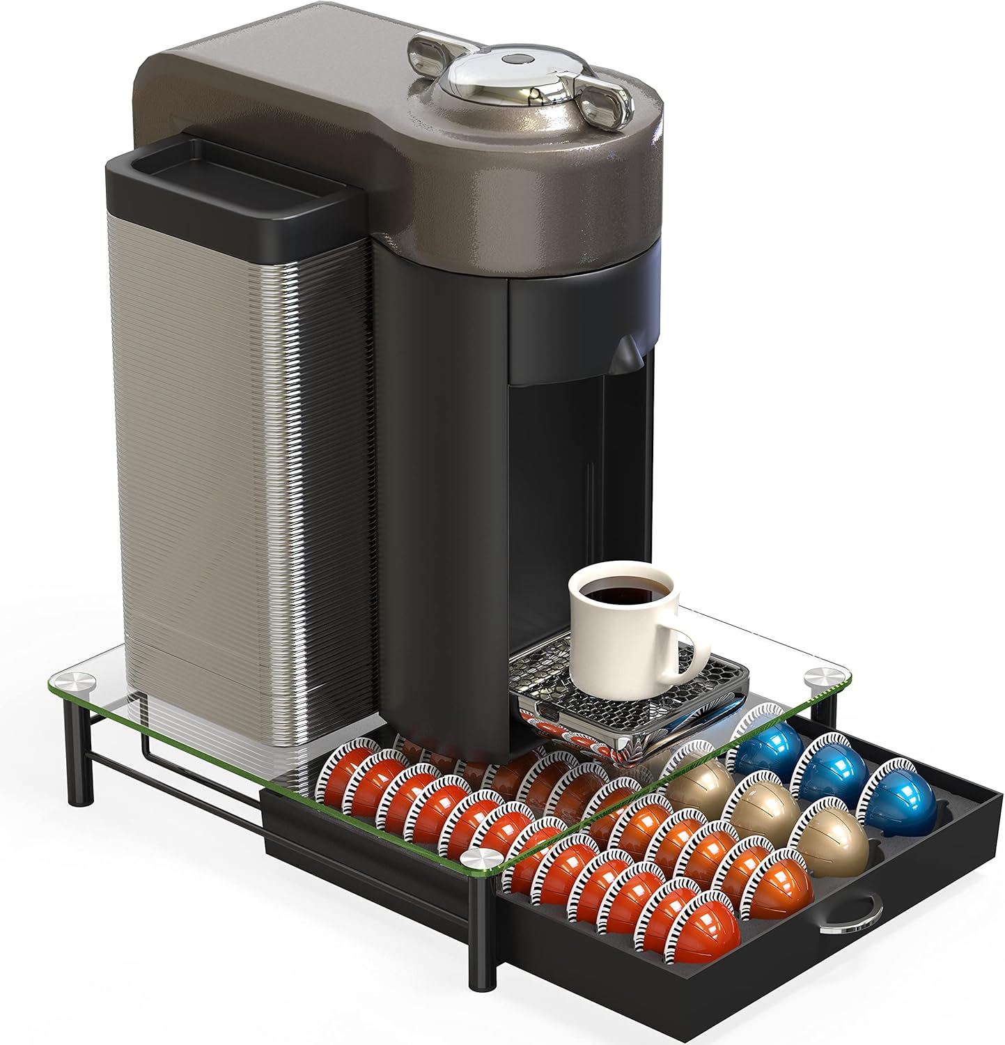 - [ Sliding Drawer Design ] The sliding drawer allows easy access to your capsules while keeping them neatly organized and out of sight when not in use.