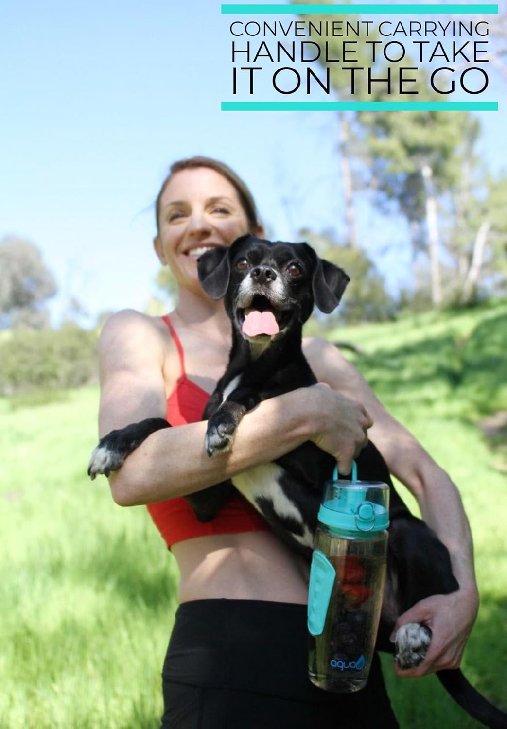aquaFrut 32 OZ Fruit Infuser Water Bottle BPA-Free Fruit Infusion Sports Bottle - Flip Top Lid w Drinking Spout, Leak Proof, Made of Durable Tritan. Free Recipe eBook! (Teal)