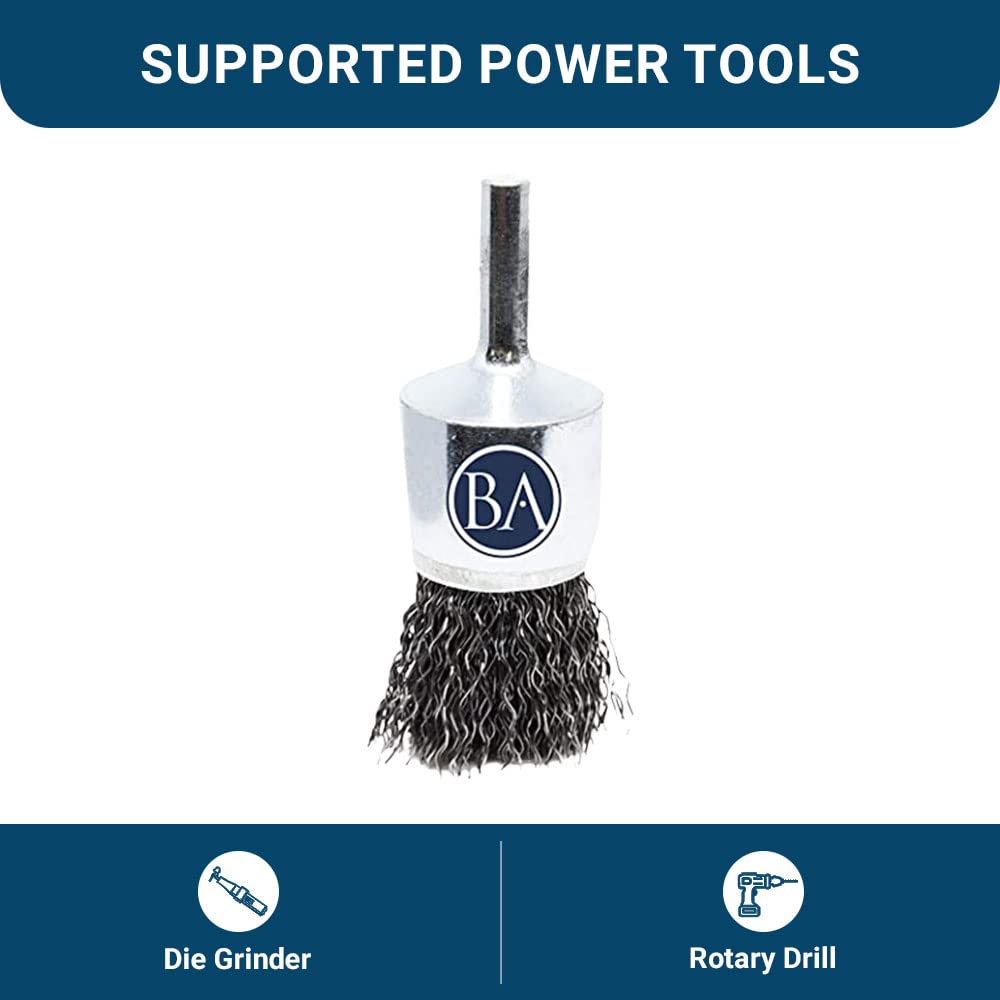 Benchmark Abrasives 1" Crimped Wire End Brush Die Grinder for Cleaning deburring on Cast Iron, Steel, Titanium, Nickel, 1/4" Shank for Rotary Tools (5 Pack) - Carbon Steel