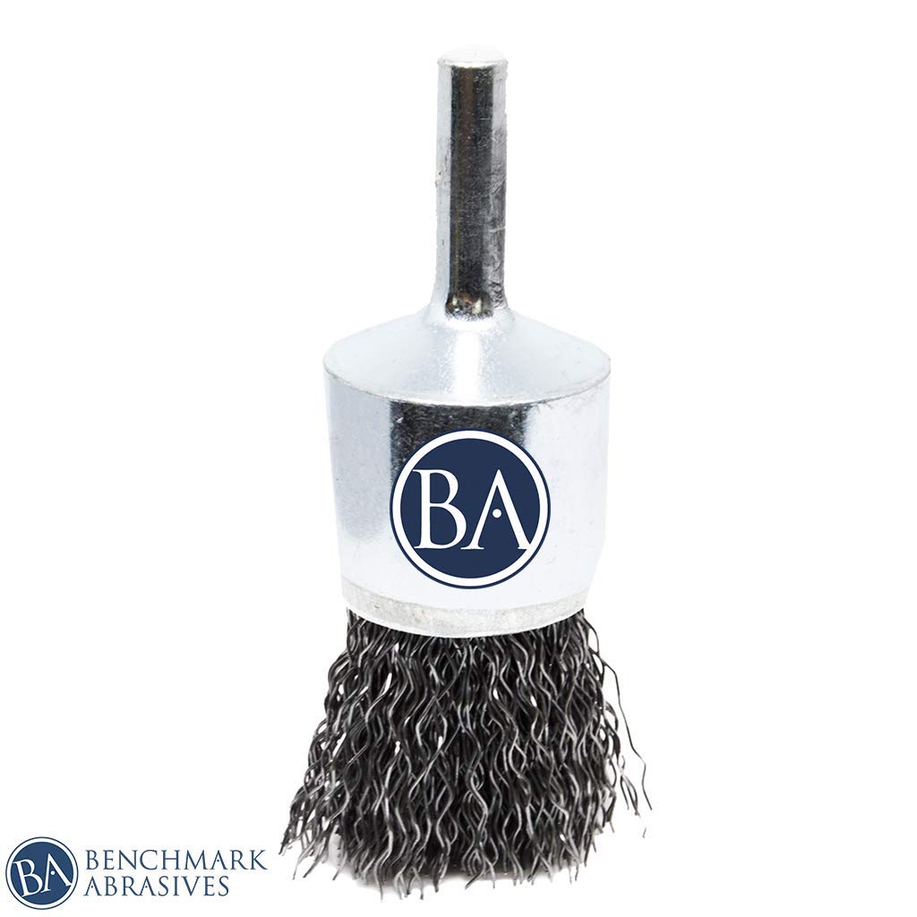- Benchmark Abrasives 1"crimped wire end brush is ideal for cleaning rust, deburring, removing scale and dirt, edge blending, roughening for adhesion, weld prep, etc.