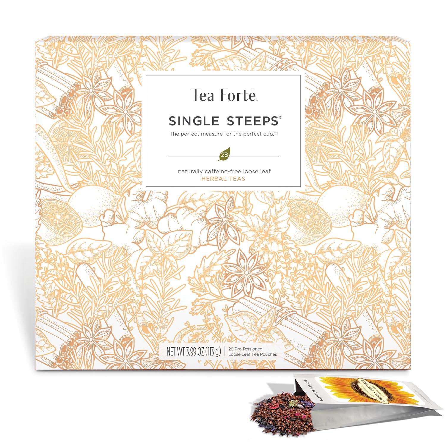 - SINGLE STEEPS Tea Chest sampler with a variety of individually wrapped single serving pouches, the perfect measure of organic loose tea for a perfect 12oz cup or pot of hot tea