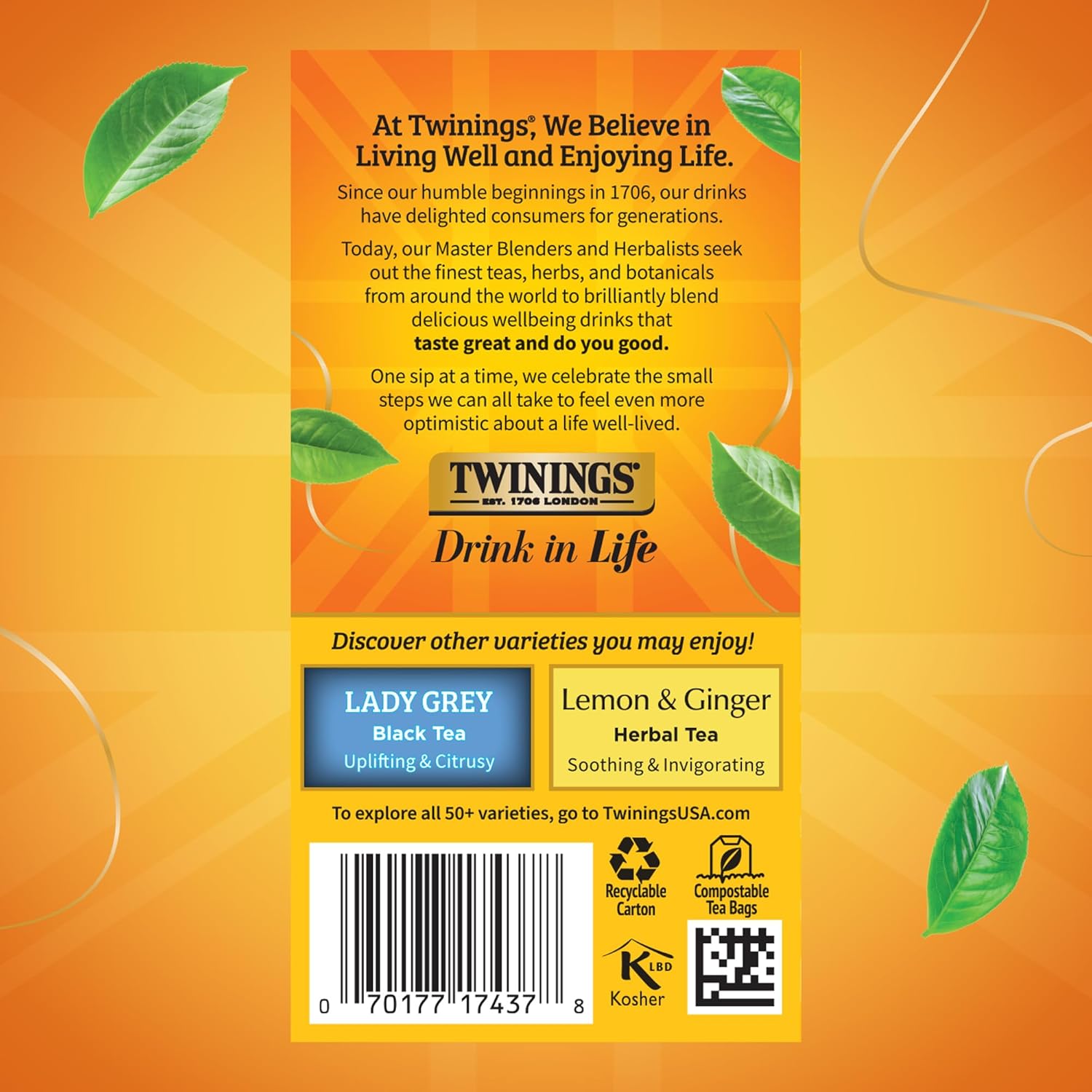 - INDIVIDUALLY SEALED TEA BAGS STAY FRESH: Take your tea on the go in your purse, workout bag, backpack, school or work desk or car; Each tea bag is sealed for freshness so every cup of Twinings is the perfect cup of Twinings