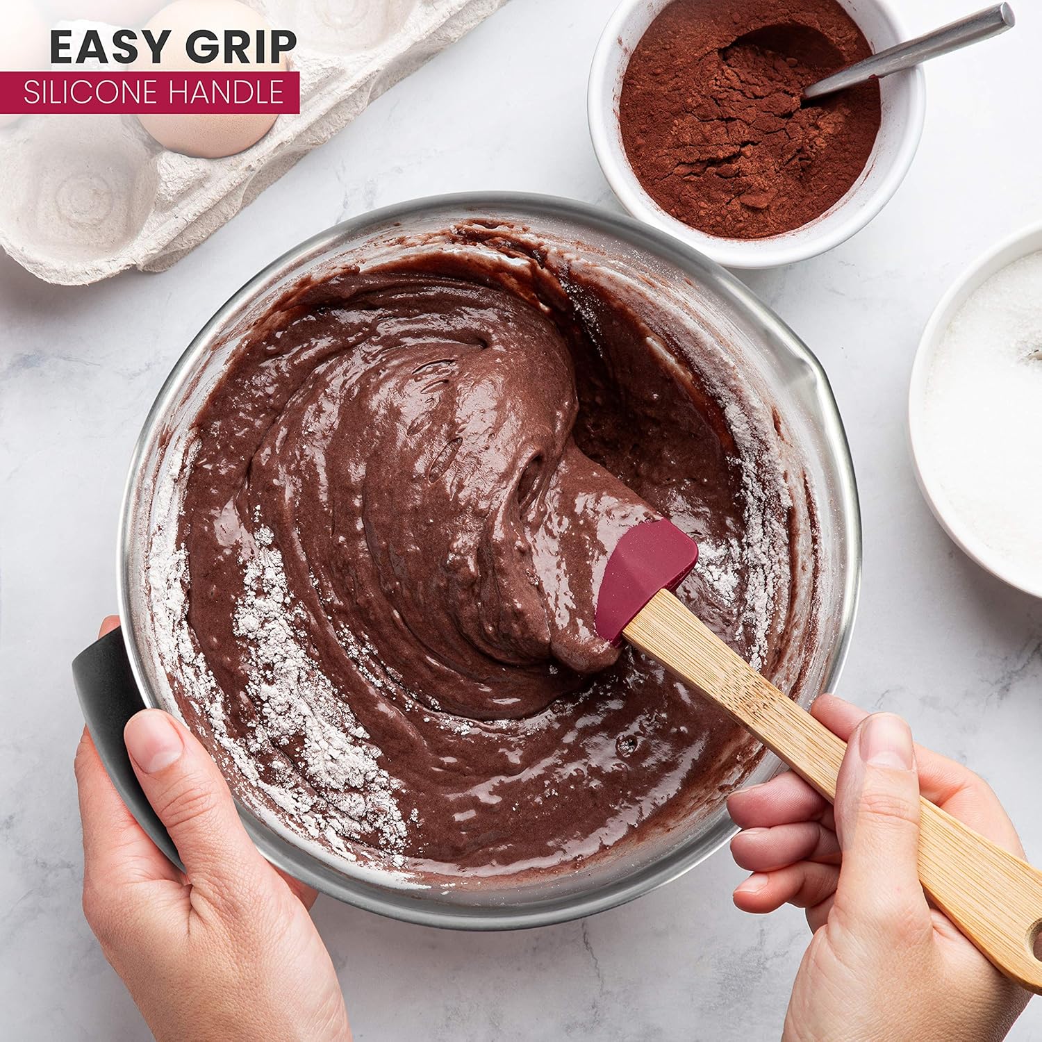 - 18/10 Stainless Steel Bowls with Lids: Convenient 1.5, 3 & 5 quart bowls with lids. The metal mixing bowls have matte finish inside to prevent ugly scratches. Elegant Black & Beautiful Wine Red!