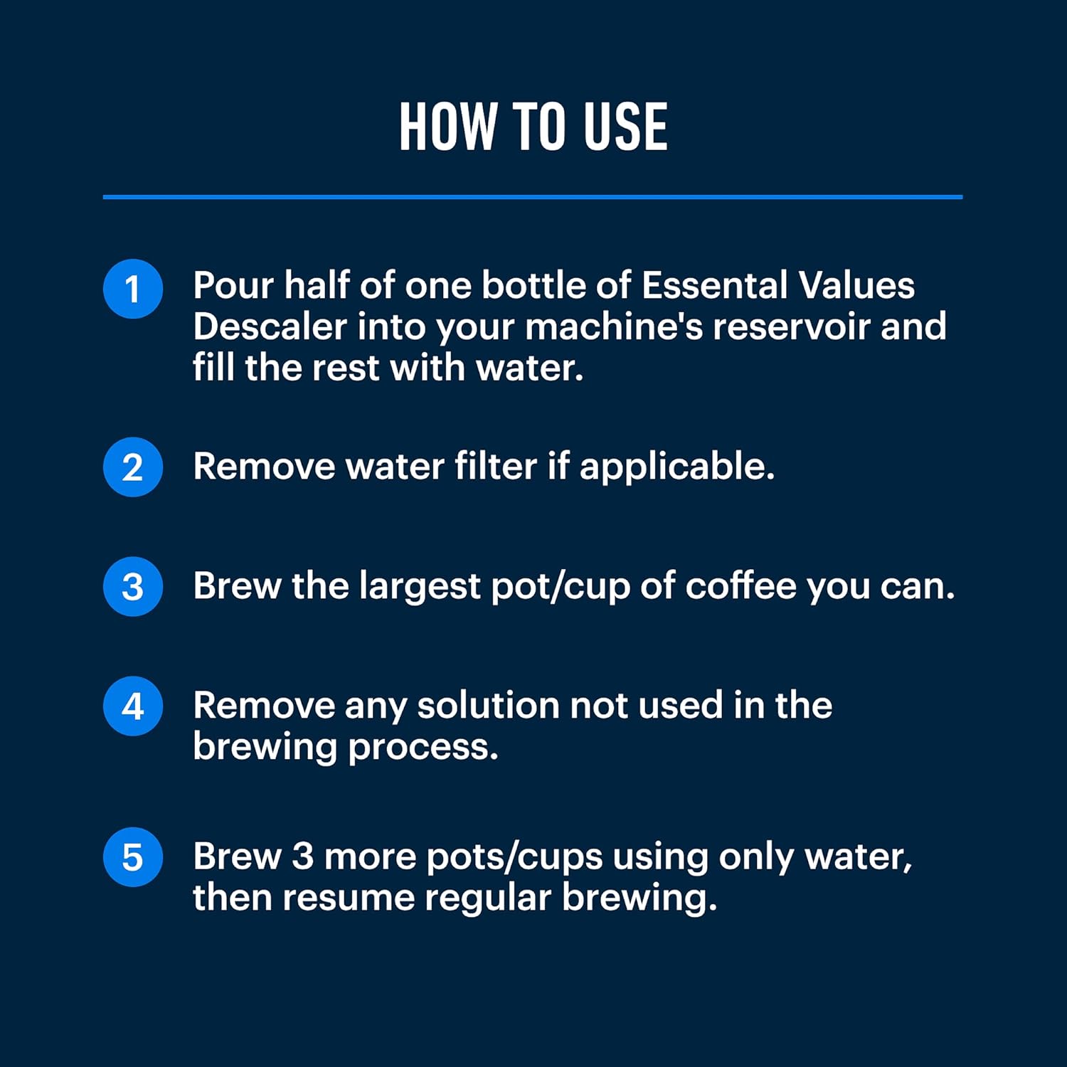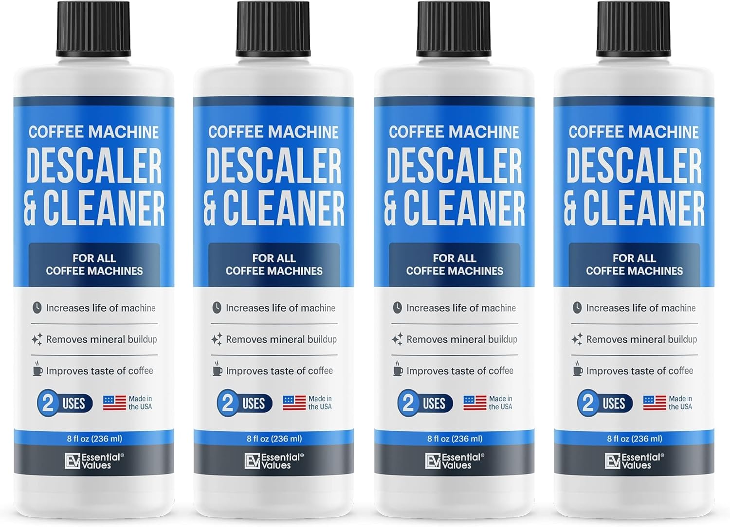 - Incredible Value: Our 4-pack descaling solution coffee cleaner will bring new life to your coffee machine. Each 8 oz bottle works for 2 uses, meaning you get a whopping 8 uses from 1 purchase. We recommend descaling your machine every 2-3 months.