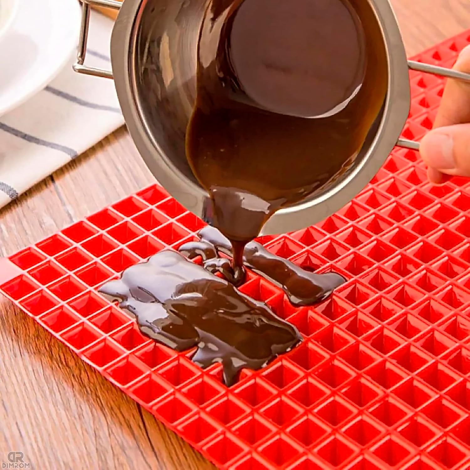 Silicone Baking Mat - 16x11.5" Non Stick Silicone Cooking Mat Fat Filtering Red Pyramid Design, for Roasting, BBQ & Pastry Making - Oven and Microwave Bacon Cooker Food Grade, Flexible & Easy-to-Clean