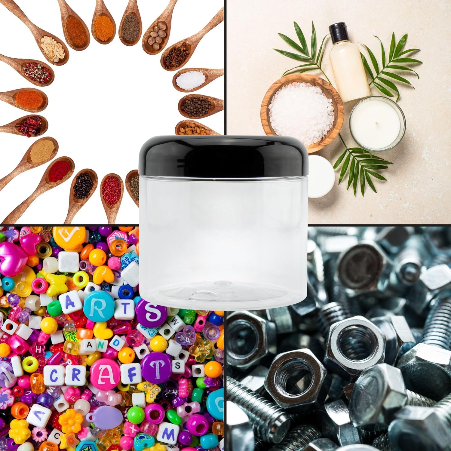 Cornucopia Brands 16oz Clear Plastic Jars w/Domed Lids (6-Pack); BPA Free PET Stackable Straight Sided Canisters for Bathroom & Kitchen Storage