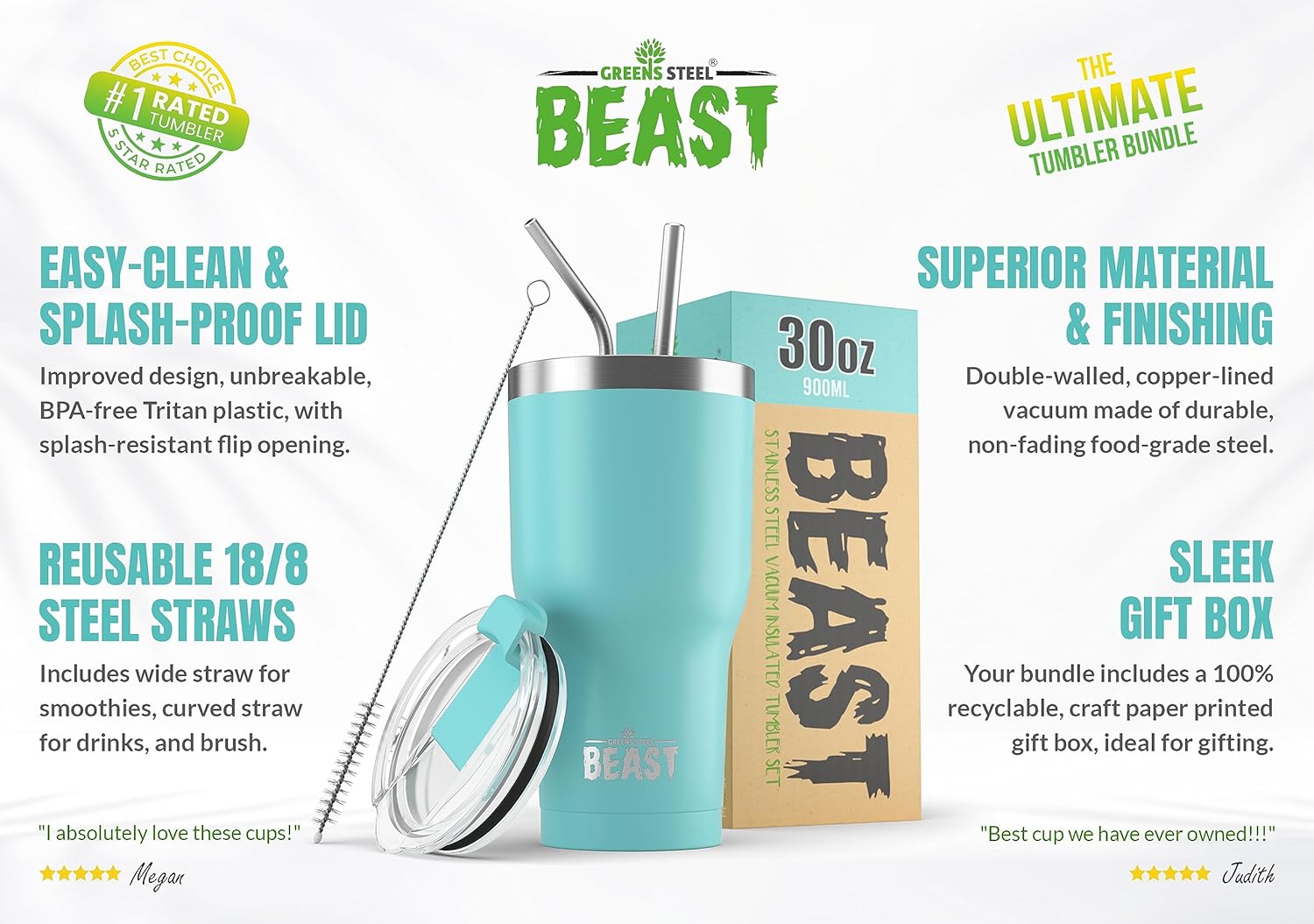 Beast 30 oz Tumbler Stainless Steel Vacuum Insulated Coffee Ice Cup Double Wall Travel Flask (Aquamarine Blue)