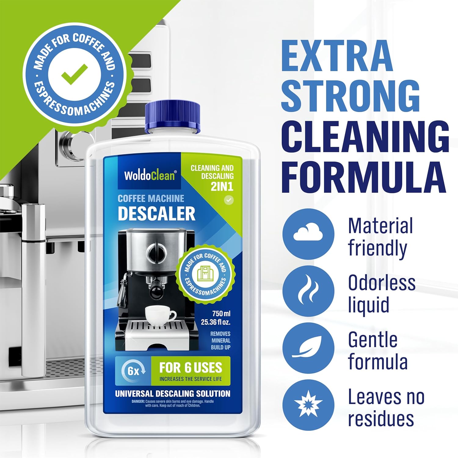 - Descaler solution for coffee maker & espresso maschines. 25.4 oz (6 uses). Also for other drip espresso machines, coffee makers, superautomatics, & kettles.
