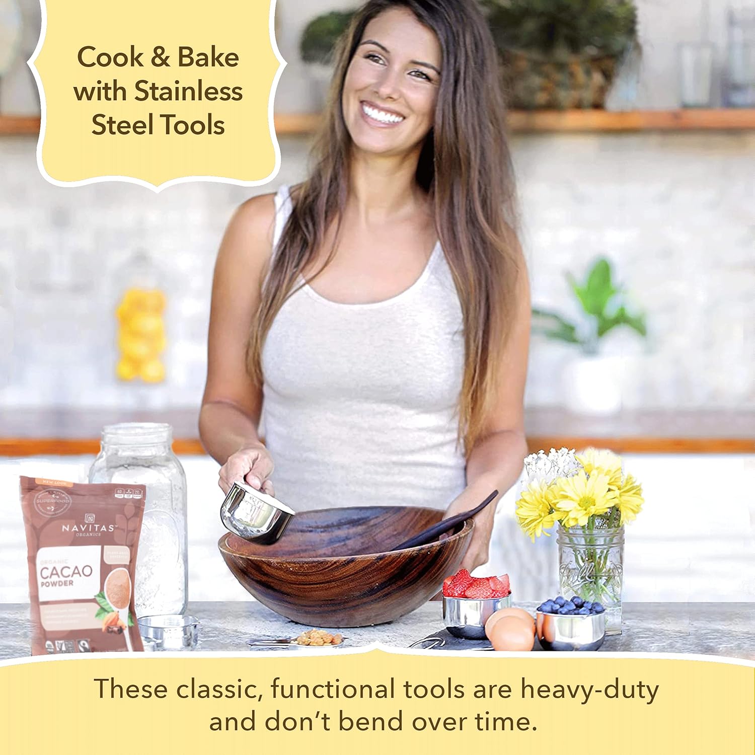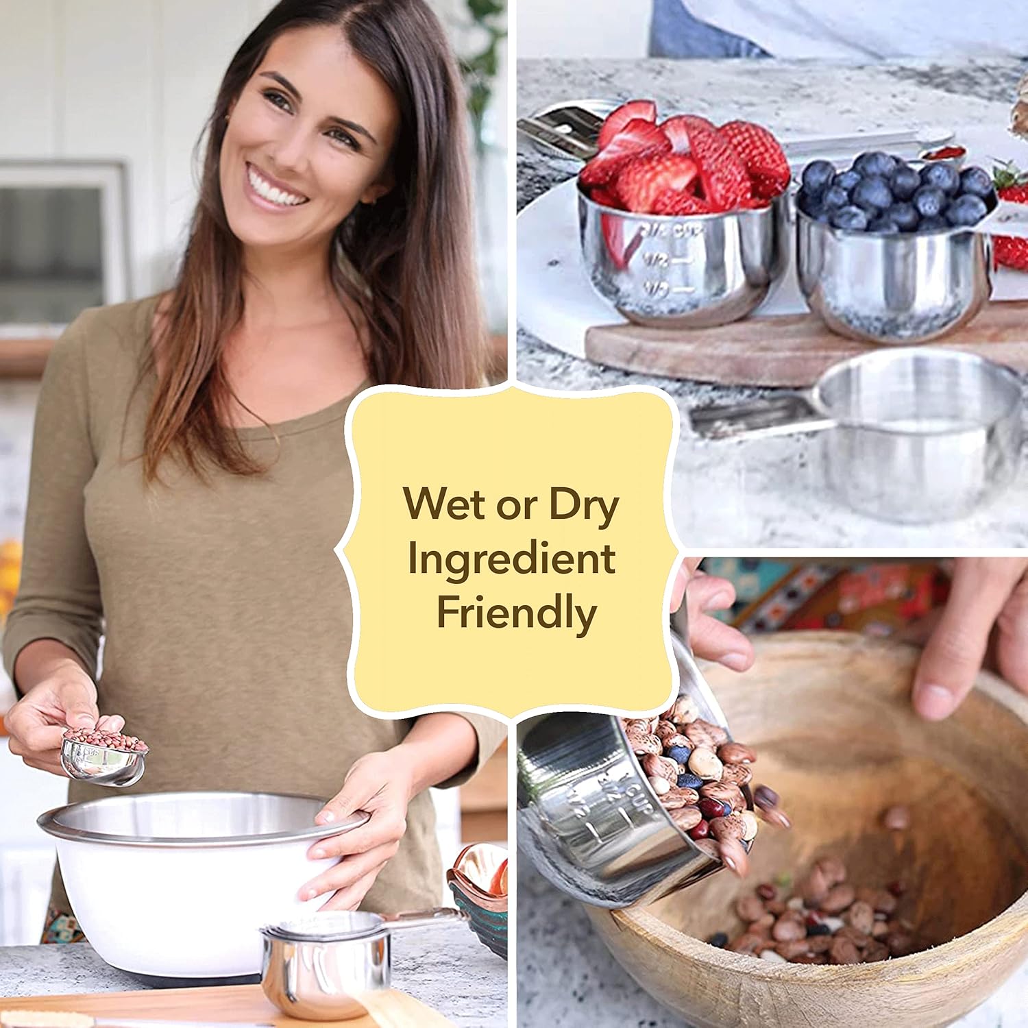 - Rust-Resistant: Don't let your cooking skills or accessories get rusty! Each stainless steel measuring cup in this set is totally rust-resistant and built for stress-free cleanup.