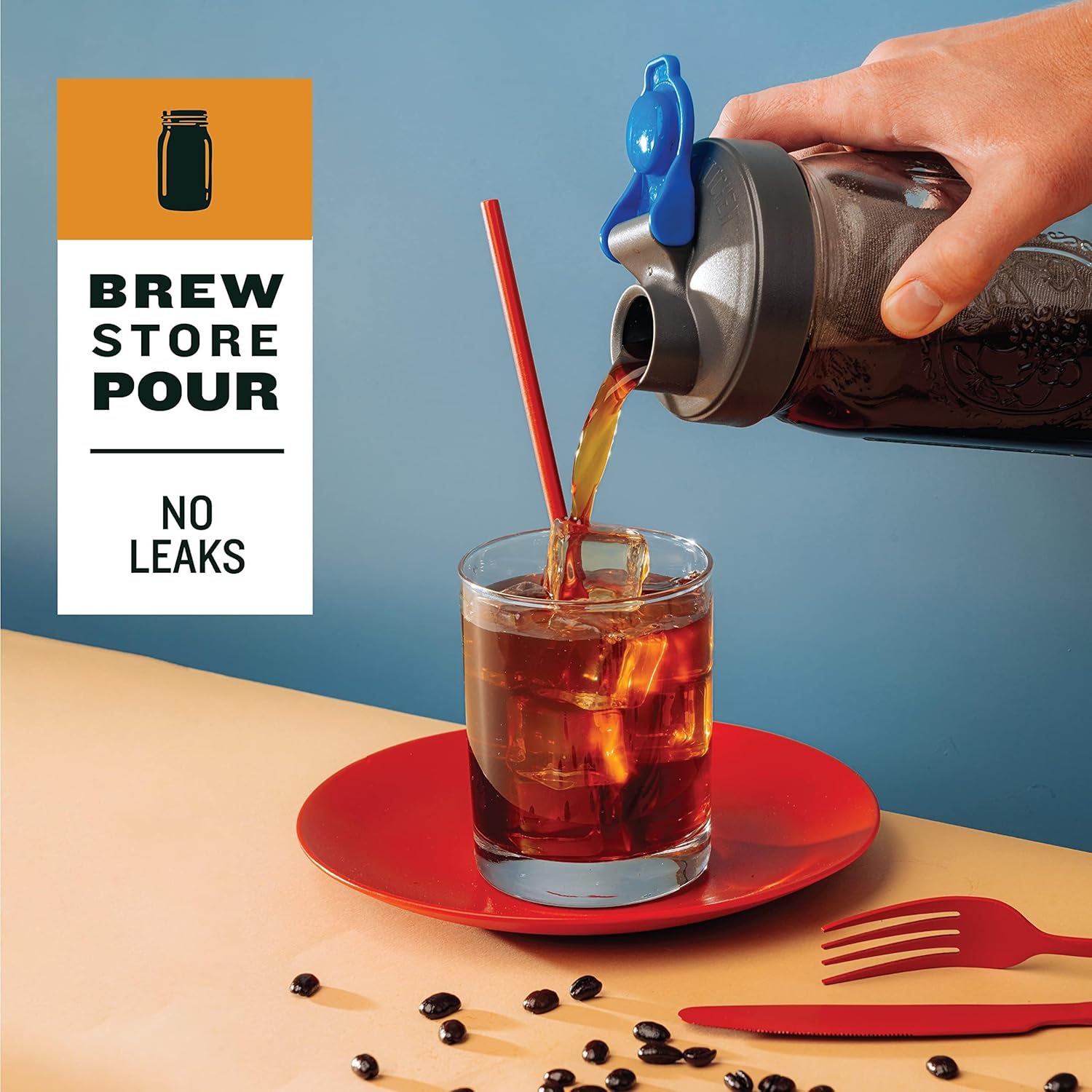 - EASY POUR DISPENSER, LEAK-PROOF LID: The flip cap pour spout is thoughtfully designed for effortless pouring, eliminating the need for awkward tilting or messy spills. Simply flip the cap, and watch your perfectly brewed cold coffee flow smoothly into your cup, hassle-free. It also features a precision-engineered leak-proof lid, ensuring that your brew remains securely sealed and mess-free, so you can enjoy your coffee wherever you go.