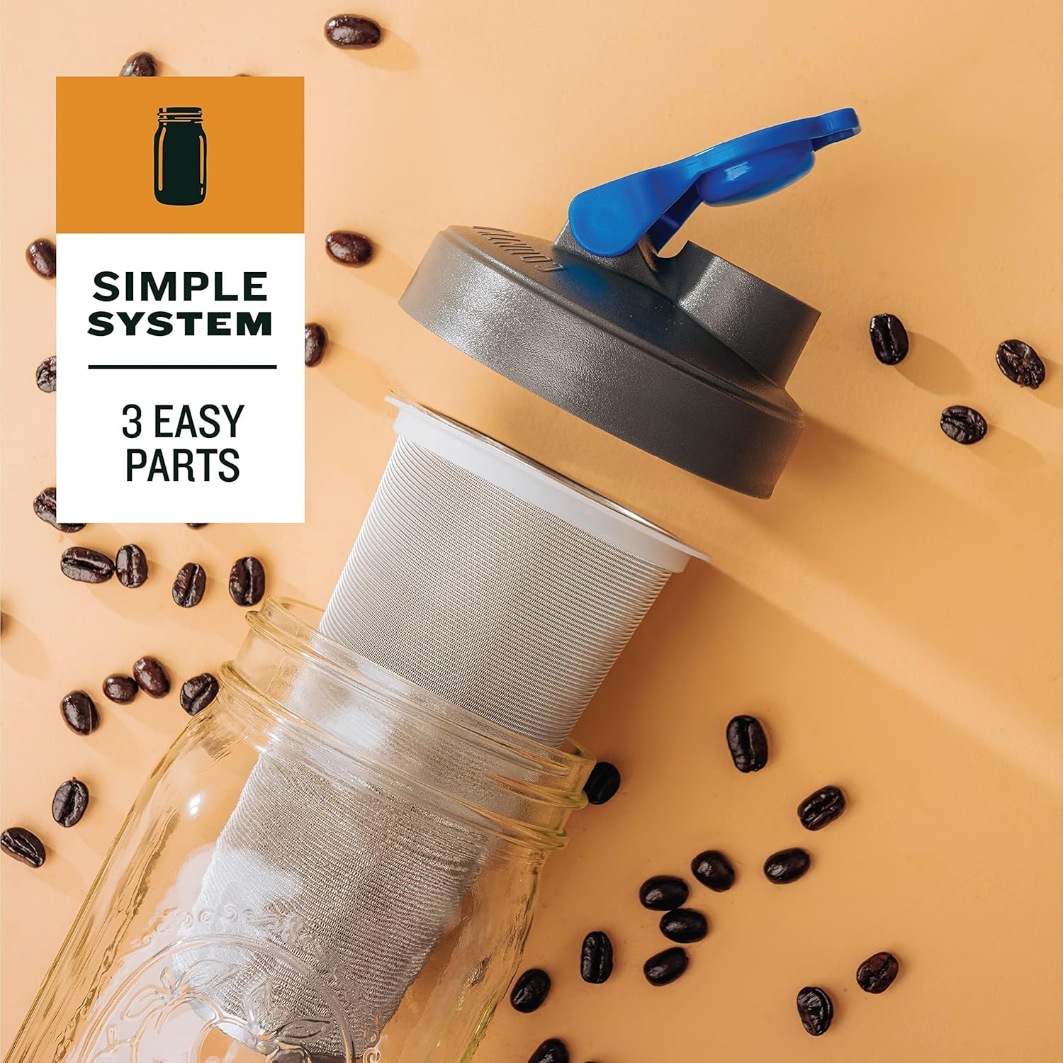- TRAVEL-FRIENDLY DESIGN: Perfect for the home office or on the go - our mason jar cold brew coffee maker was purposely built with a handle for easy carrying - saving you a trip to the coffee shop while you work from home. Check our user guide below for recipe ideas!