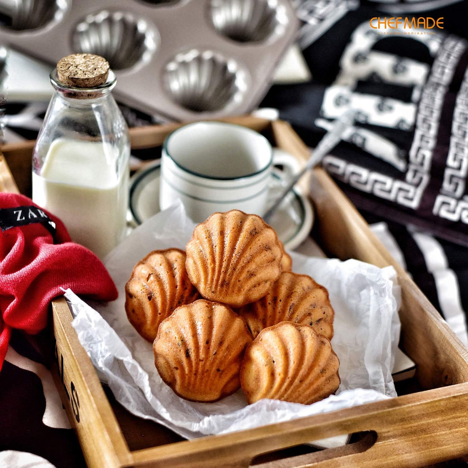 CHEFMADE Madeleine Mold Cake Pan, 6-Cavity Non-Stick Spherical Shell Madeline Bakeware for Oven Baking (Champagne Gold)