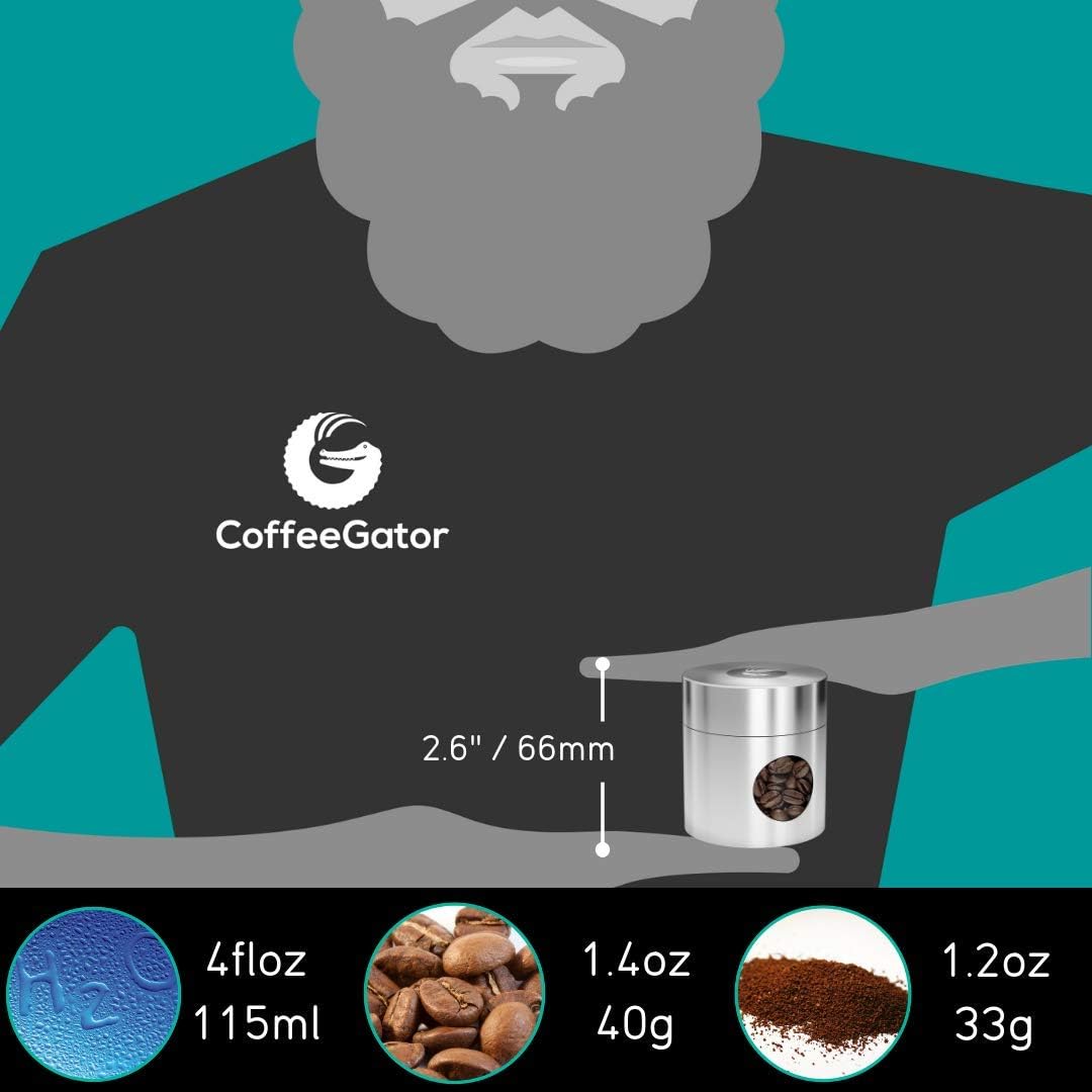 Coffee Gator Mini Coffee Canister- 4oz Borosilicate Glass, Little Container for Beans Grounds Dry Food Storage Kitchen Travel - Silver