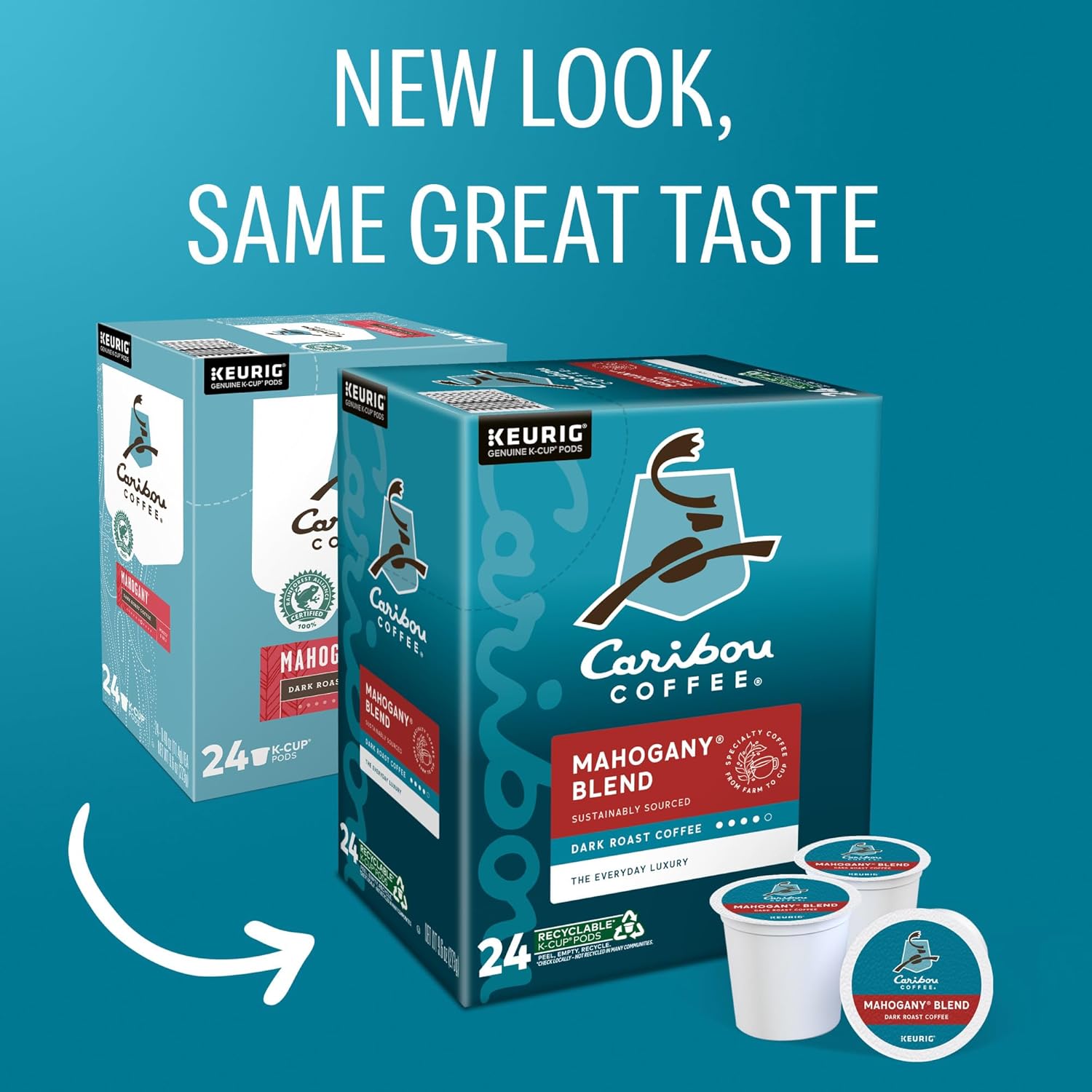 Caribou Coffee Mahogany Keurig Single-Serve K-Cup Pods, Dark Roast Coffee, 96 Count (Pack of 4)