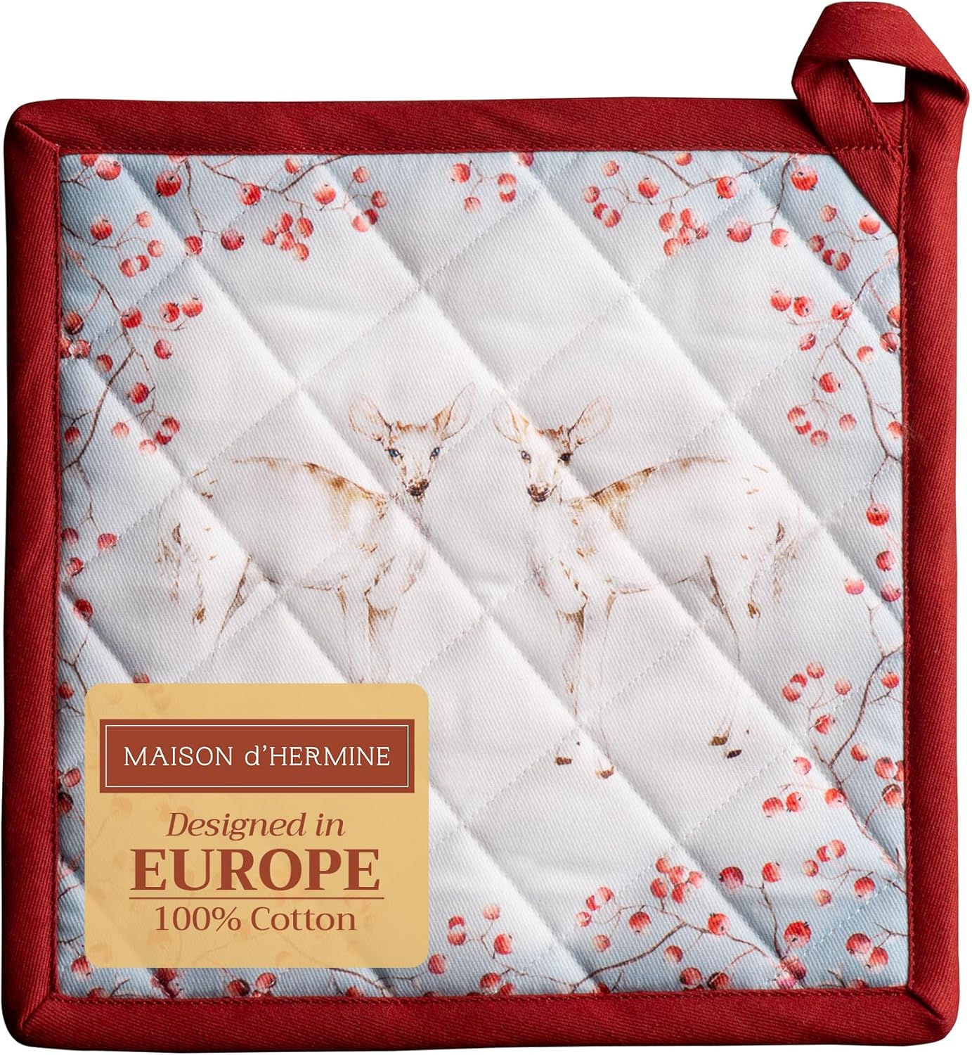 Maison d' Hermine Pot Holders 100% Cotton Heat Resistant Potholders 8" x 8" Hot Pads with Loop BBQ, Cooking, Baking, Grilling, Kitchen, Handling Hot Pans (Pack of 1, Fairytale Forest)