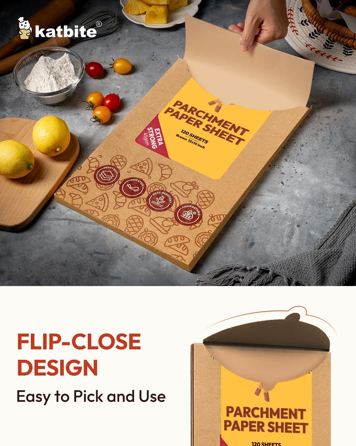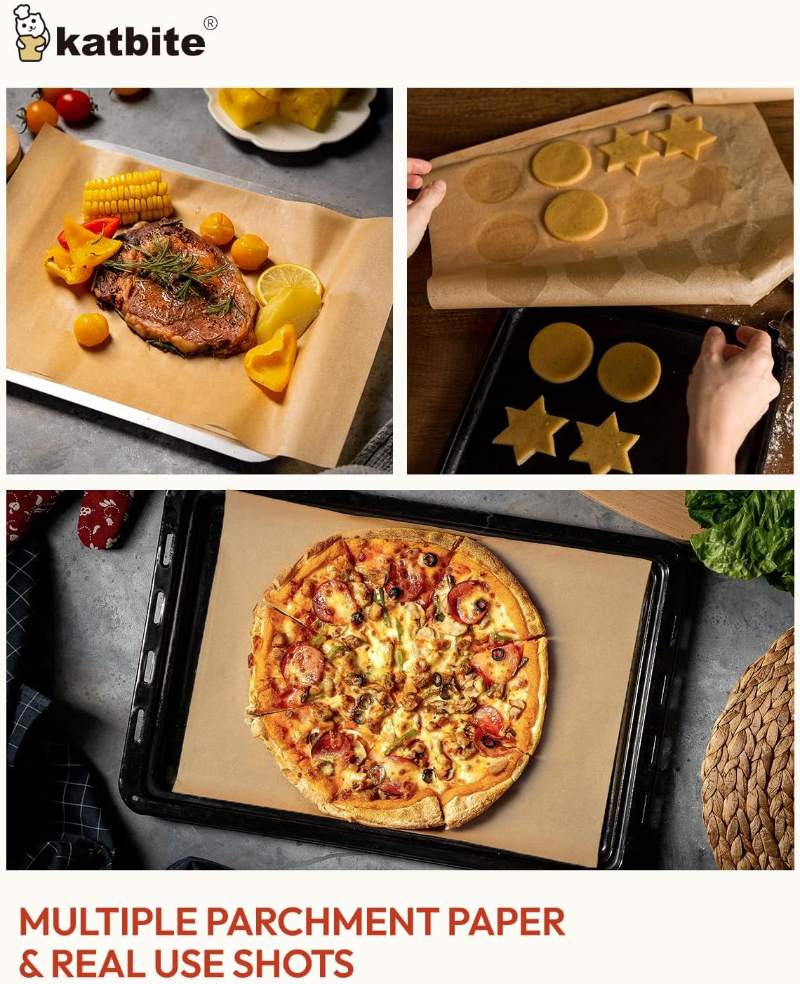 - Non-Stick & Easy To Clean - Do you love baking but hate cleaning up? Katbite parchment paper unbleached for baking makes it possible and even works great! Food can be easily slide off from the baking tray and you just need to remove the paper and throw it away after baking.