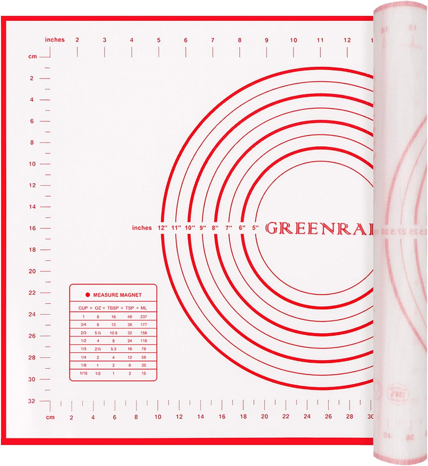 - ✔️ FOOD GRADE SILICONE: GREENRANIN Pastry Mat is made of premium silicone and glass fiber. It is safe, soft, durable and will not wrinkle or fade.