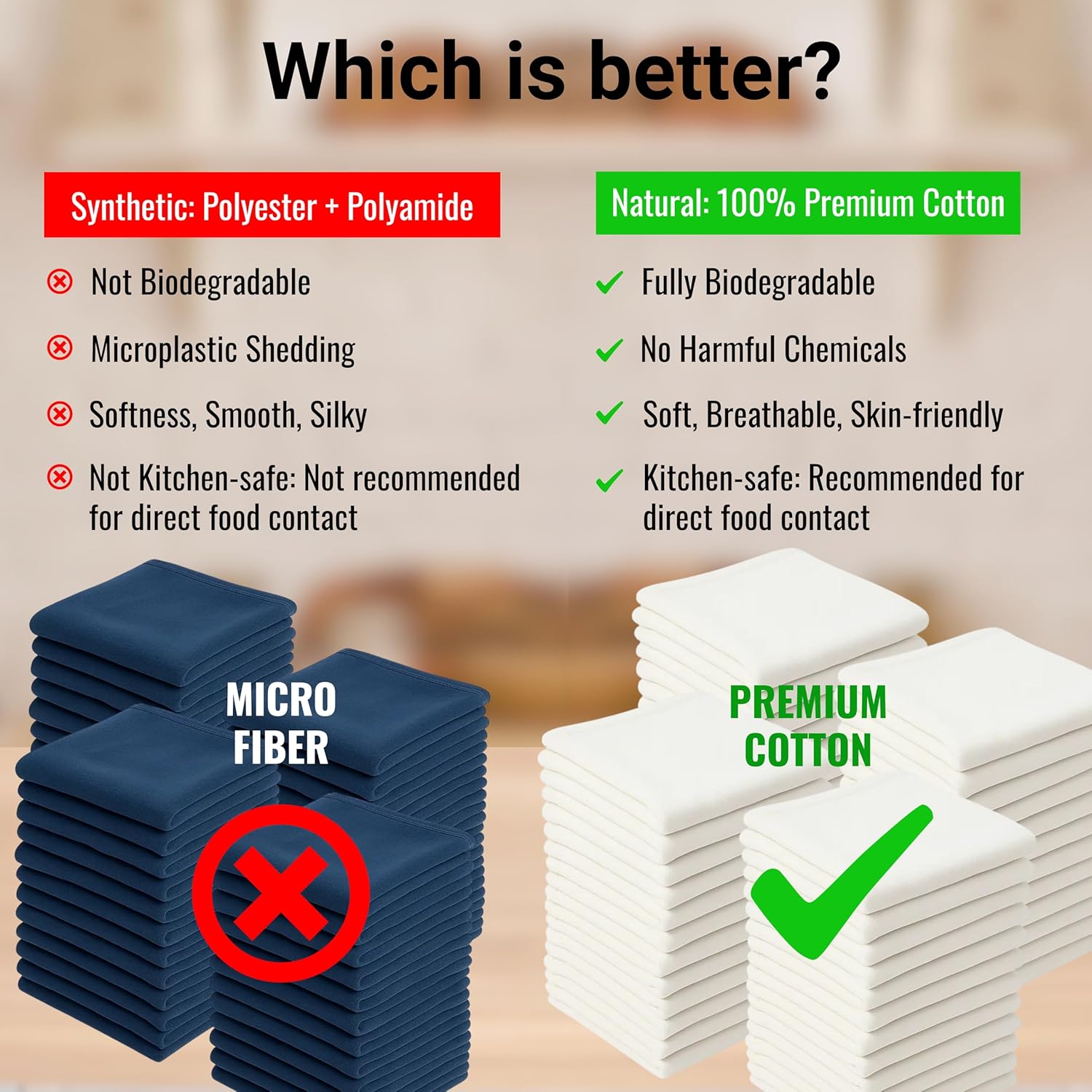 - MULTIPURPOSE: Their lint-free pure ring-spun cotton composition makes them perfect for drying glassware, hands and surfaces. Moreover, they excel at tasks like cheese straining, salad spinning, and even serving as reliable dough covers for baking.