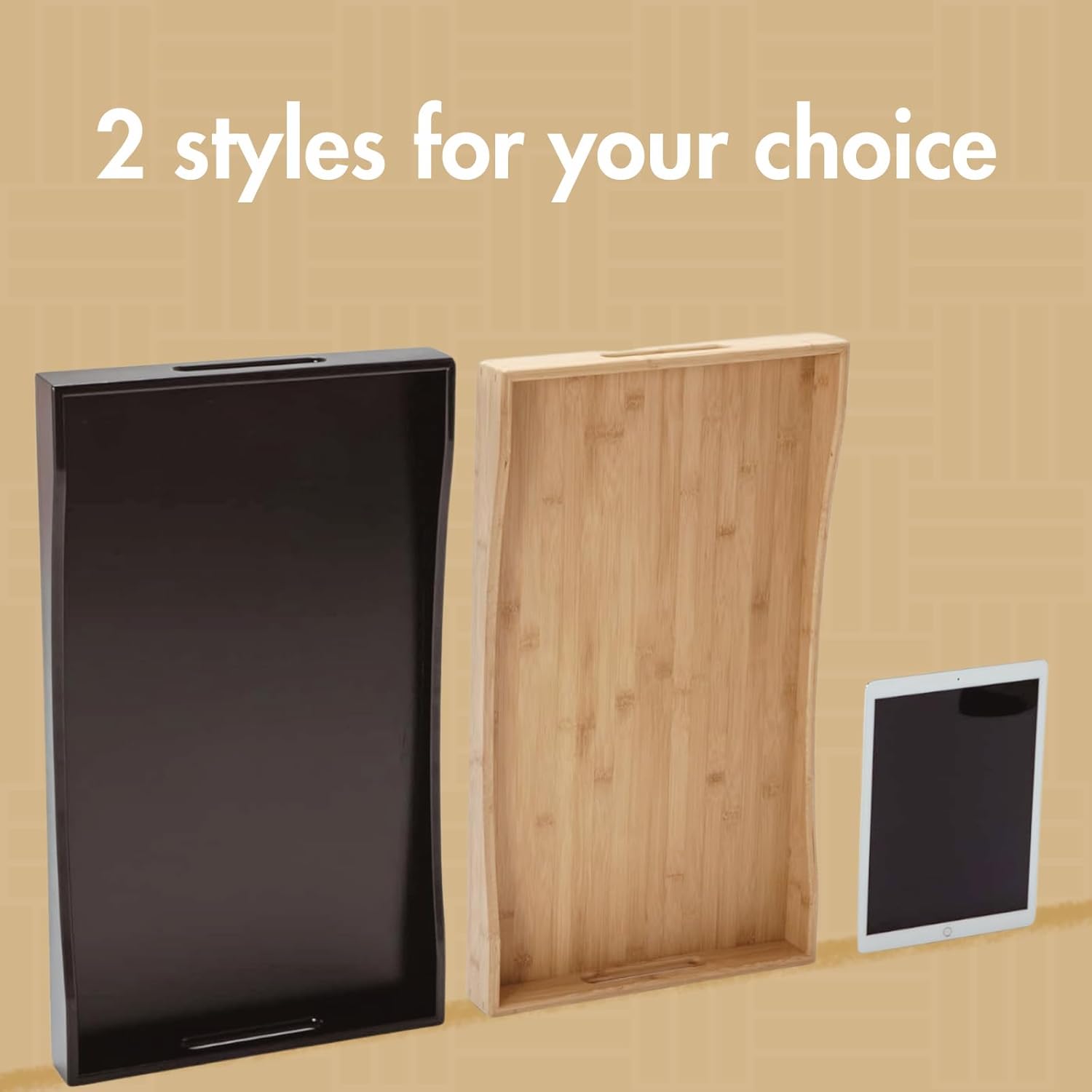 GOBAM Bamboo Extra Large Ottoman Tray, 26 x 15 inches - Wooden Tray for Dining Table & Parties, Serving Tray with Handles for Food, Cheese, Snacks, Tea, Coffee & Wine