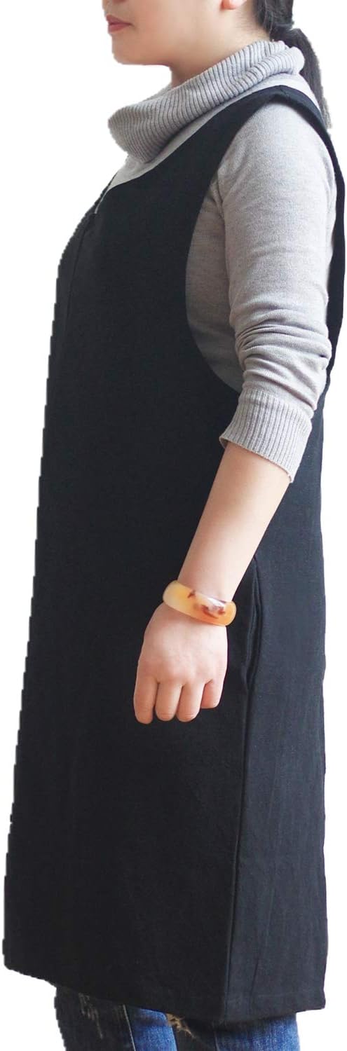 Cotton Linen Japanese Apron Halter Cross Back Bandage X Shape Aprons Two Pockets
