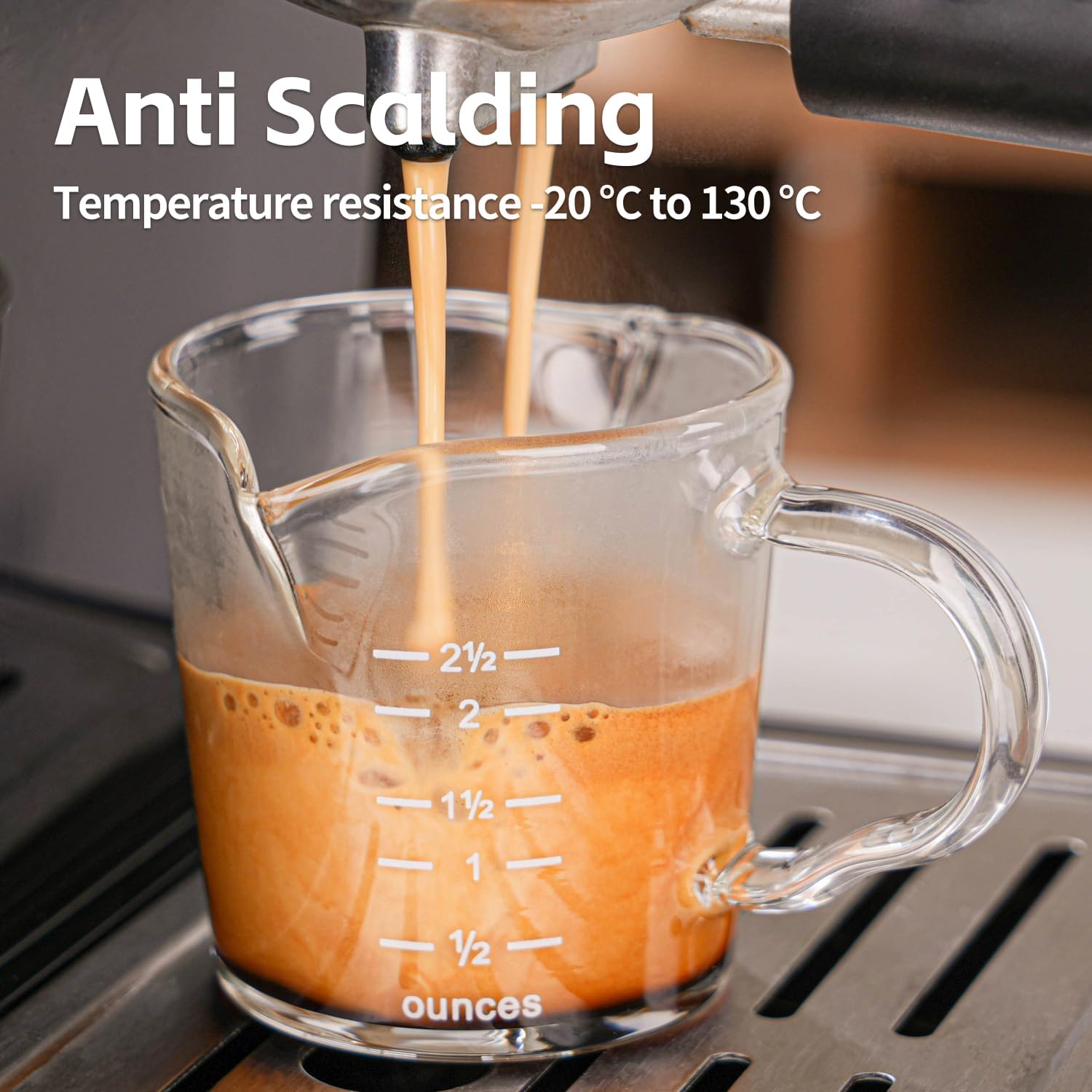Espresso Shot Glass 3-Ounce Triple Pitcher Barista Double Spouts With Pouring Handle (2 Pack)