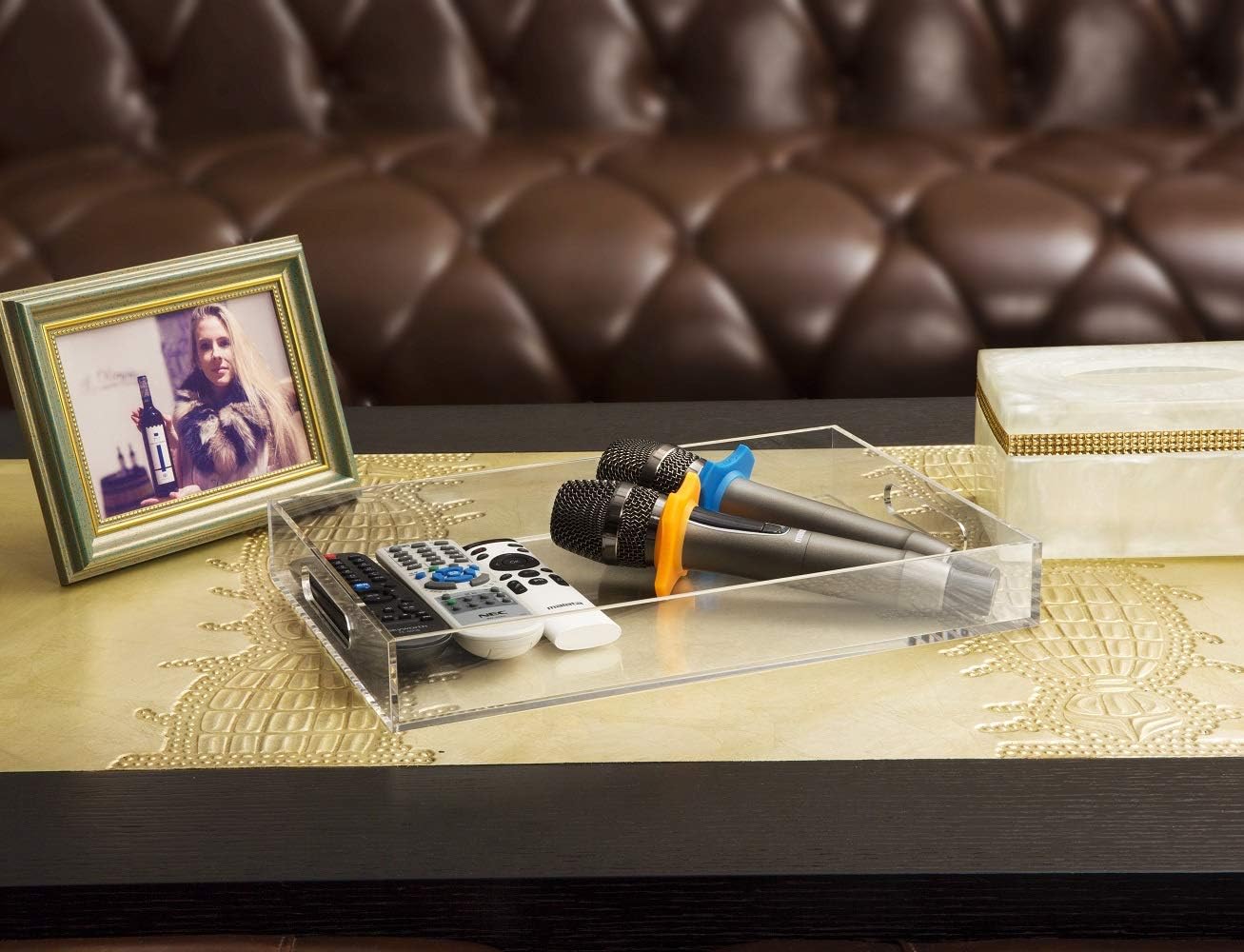 Clear Sturdy Acrylic Serving Tray with Handles-10x15Inch-Serving Coffee,Appetizer,Breakfast,Butler-Kitchen Countertop Tray-Makeup Drawer Organizer-Vanity Table Tray-Ottoman Tray-Decorative Tray