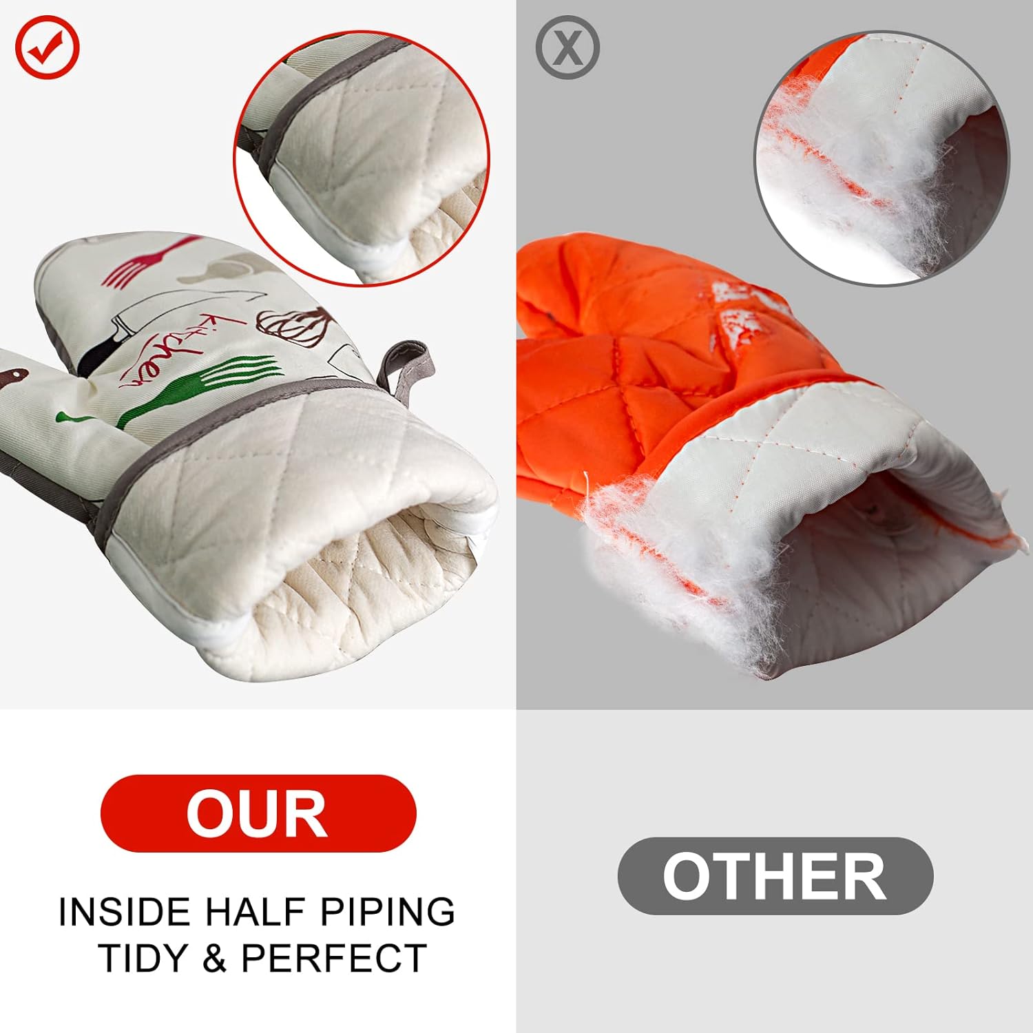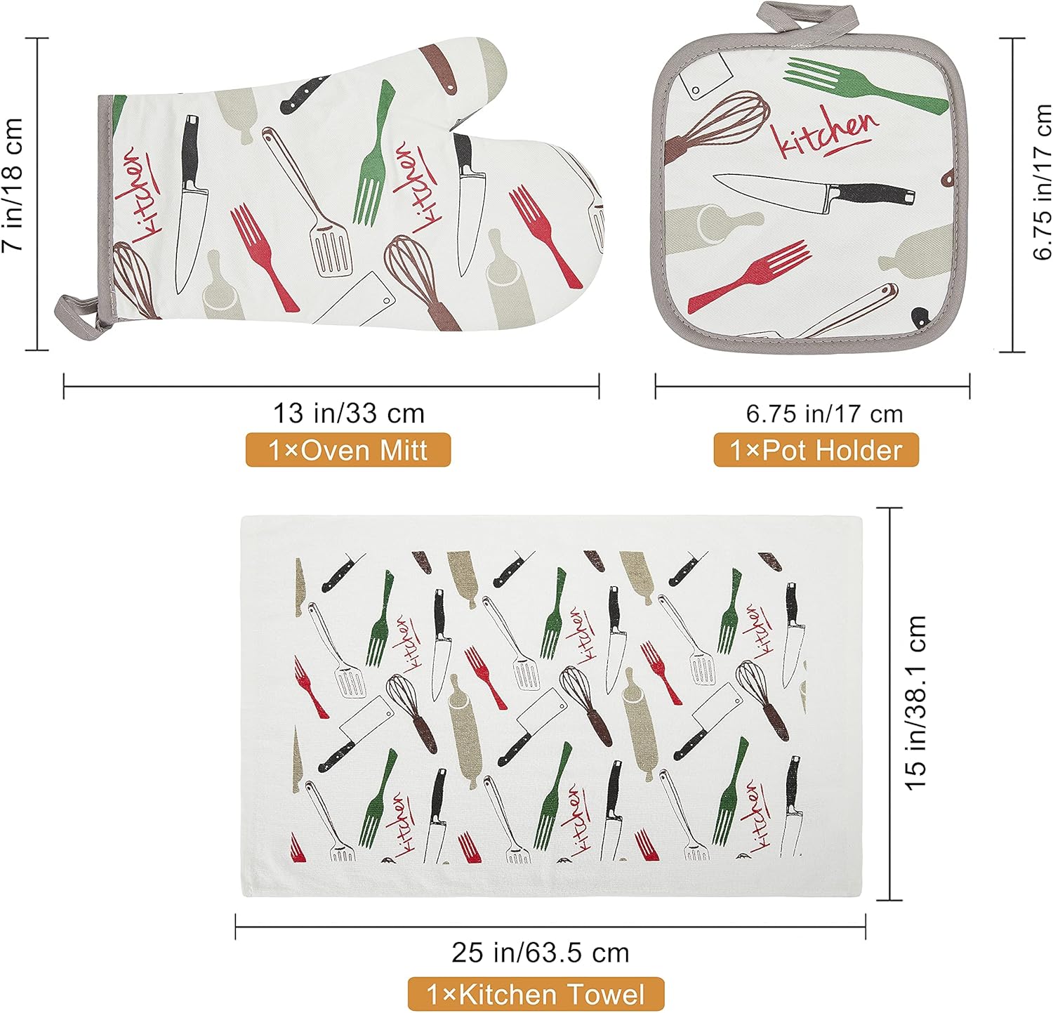 Oven Mitts and Potholders Dish Towles Set 100% Cotton for Perfect for Gifting, Baking, and Everyday Cooking Durable Heat Resistant for Kitchen and Machine Washable (3-Piece Fork and Knife)
