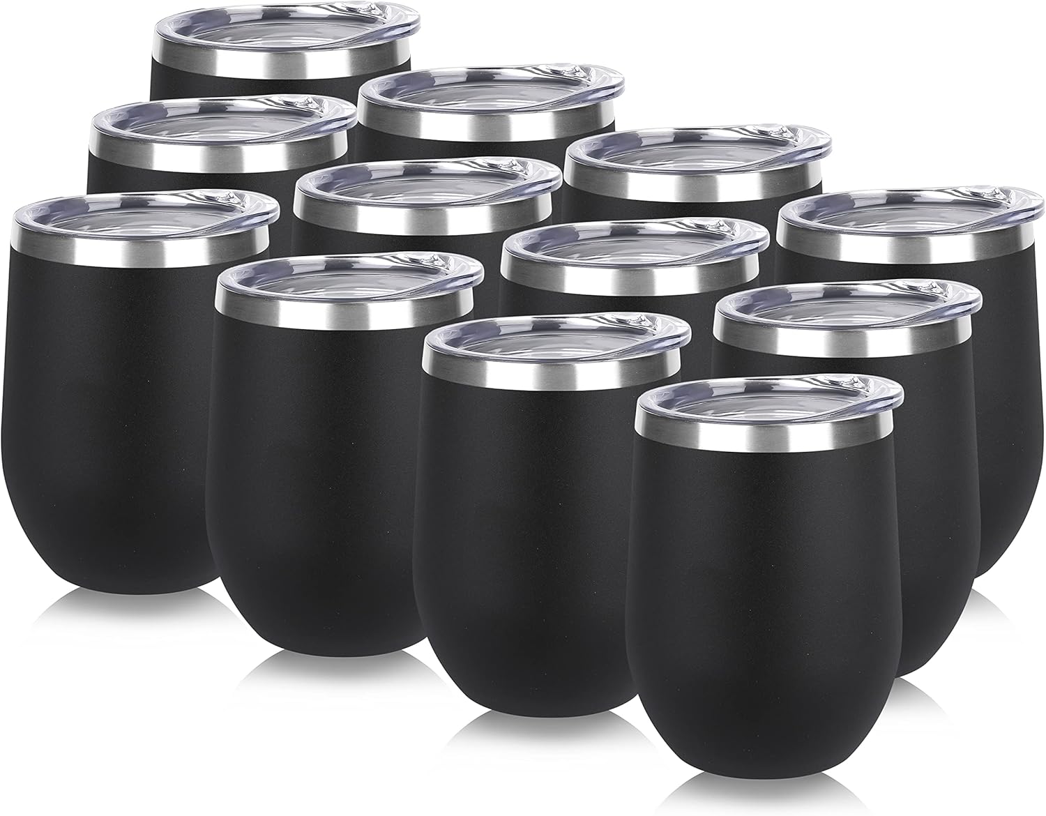 DOMICARE Stainless Steel Wine Tumbler Bulk with Lid, Personalized Insulated Tumblers Set, 12oz Travel Coffee Cups Pack of 12, Black