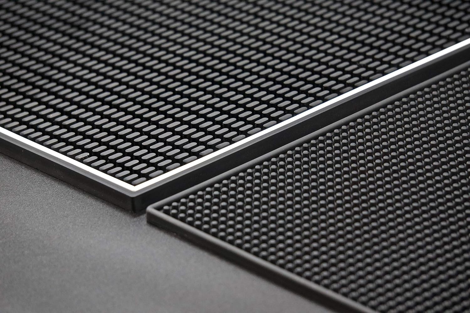 - 🥃 EXTREMELY DURABLE BAR MAT: 18 in x 12 in. Made with heavy duty and flexible rubber that is a full 0.5 in thick. Ours is made with thick elliptical prongs that stabilize martini glasses, coffee machines, bar glasses, coffee cups, and improve appearance and won't tear