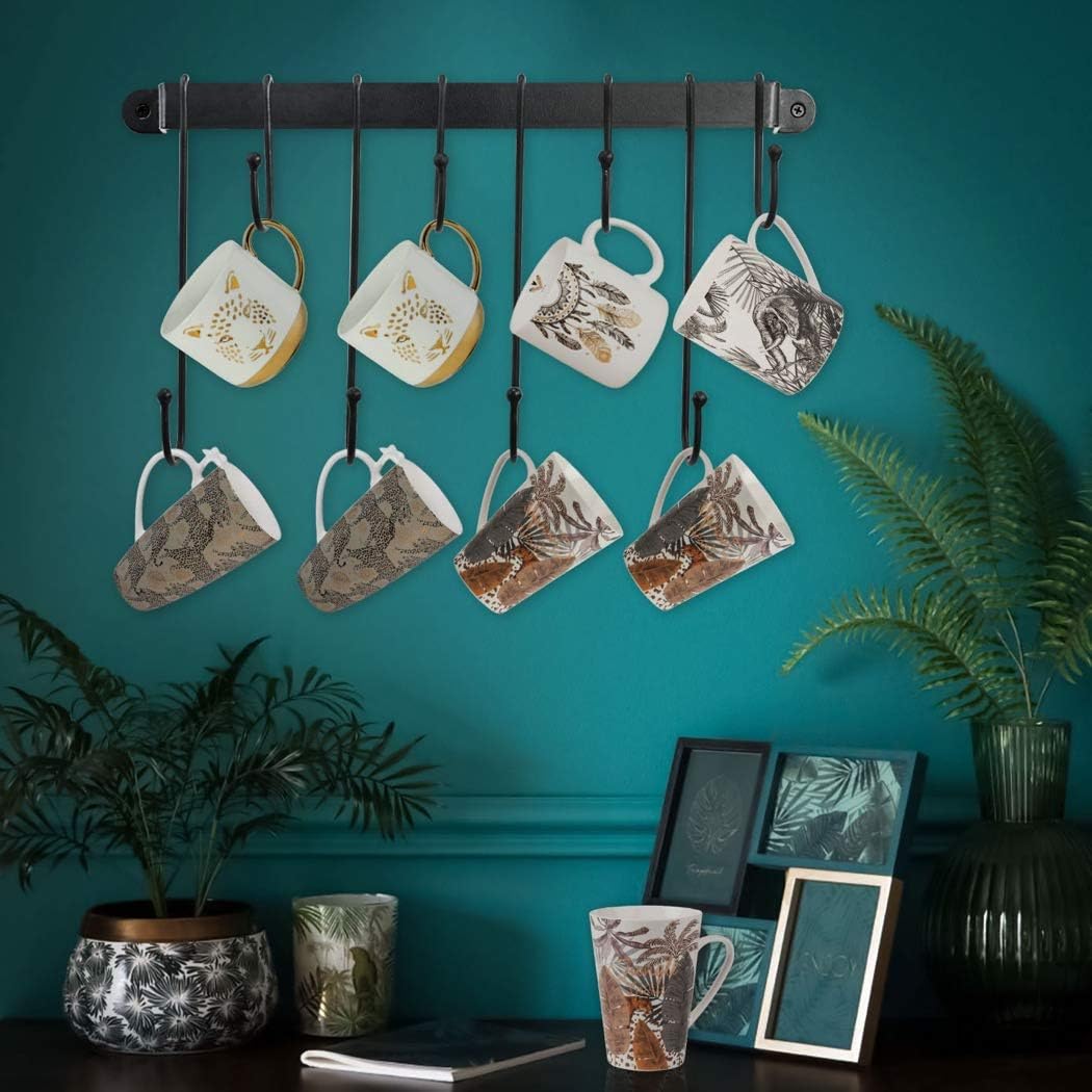- DESIGN: The black coffee cup hooks feature a combination of long and short hanging hooks, creating an elegant and practical design that can hold up to 8 coffee cups.