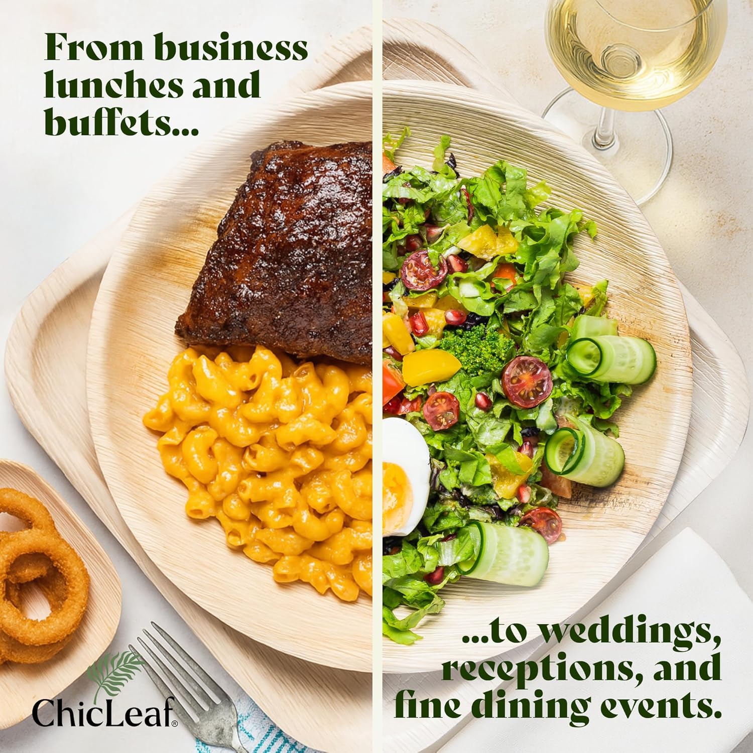 Chic Leaf Disposable Palm Leaf Plates - 50 Count, 8" Square, Natural - Bamboo Plates Disposable, Biodegradable & Compostable - Microwave Safe & Heavy Duty - Event & Party Supplies - Wedding Decor