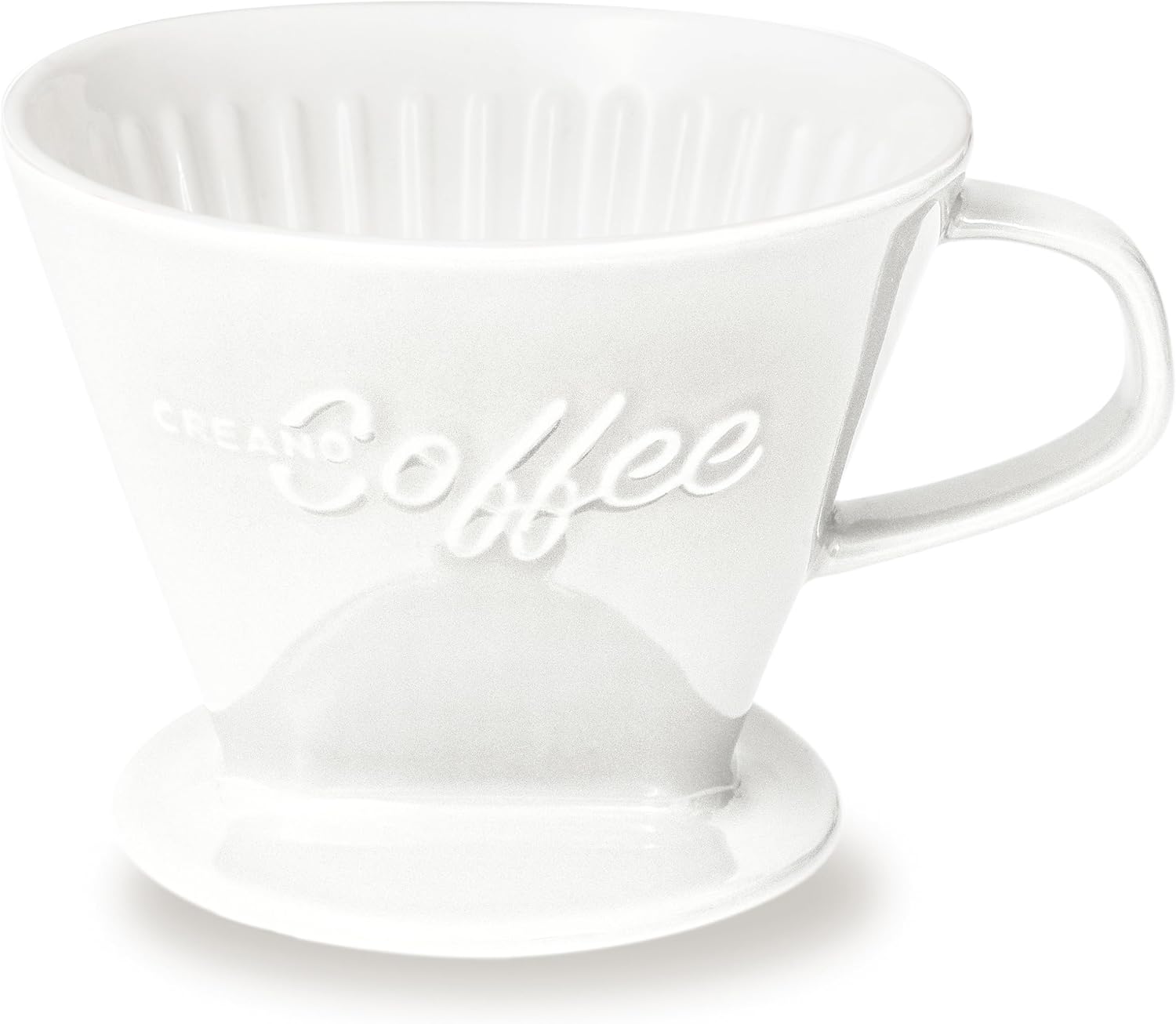 Creano XXL Porcelain Coffee Dripper White - Ceramic Cone Brewer - Pour Over Coffee Maker - Filter Size 4 - huge and heavy quality 800gr/28oz - 6 Colours availeble