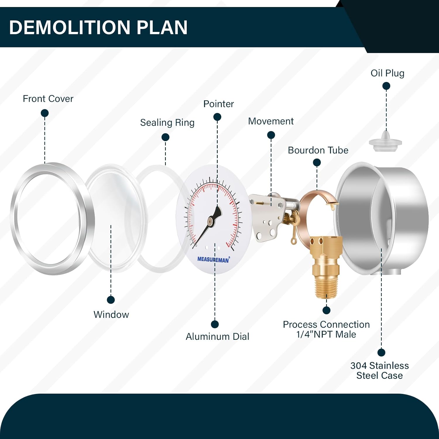 - 2-1/2" dial size, 1/4"NPT lower mount