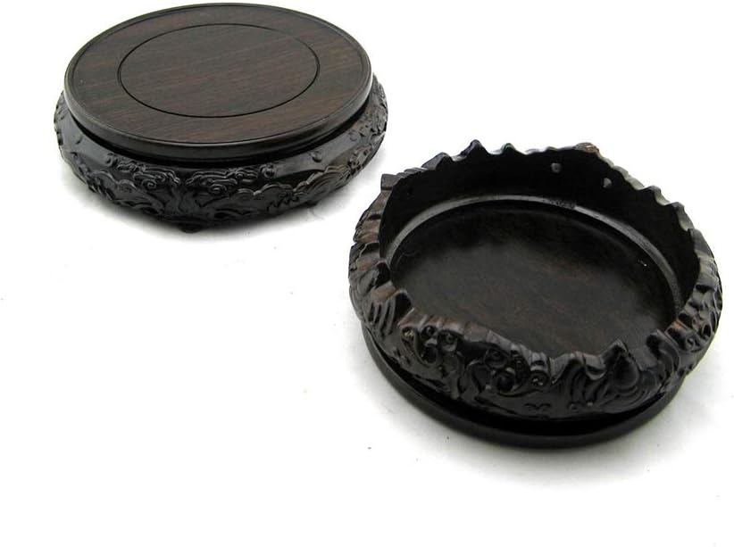 GOLDY&WENDY Oriental Luxury Round Elm Solid Wood Vase Display Stands Pedestal Base, Bat Pattern 3.9 in Diameter
