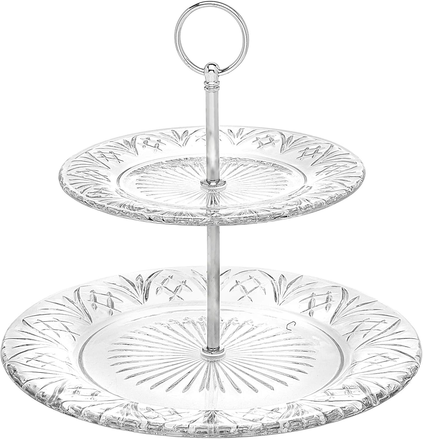 Godinger 2-Tier Platter Tray Server, Serving Stand, Cake Stand for Desserts, Appetizers & Snacks, Dublin Crystal Collection