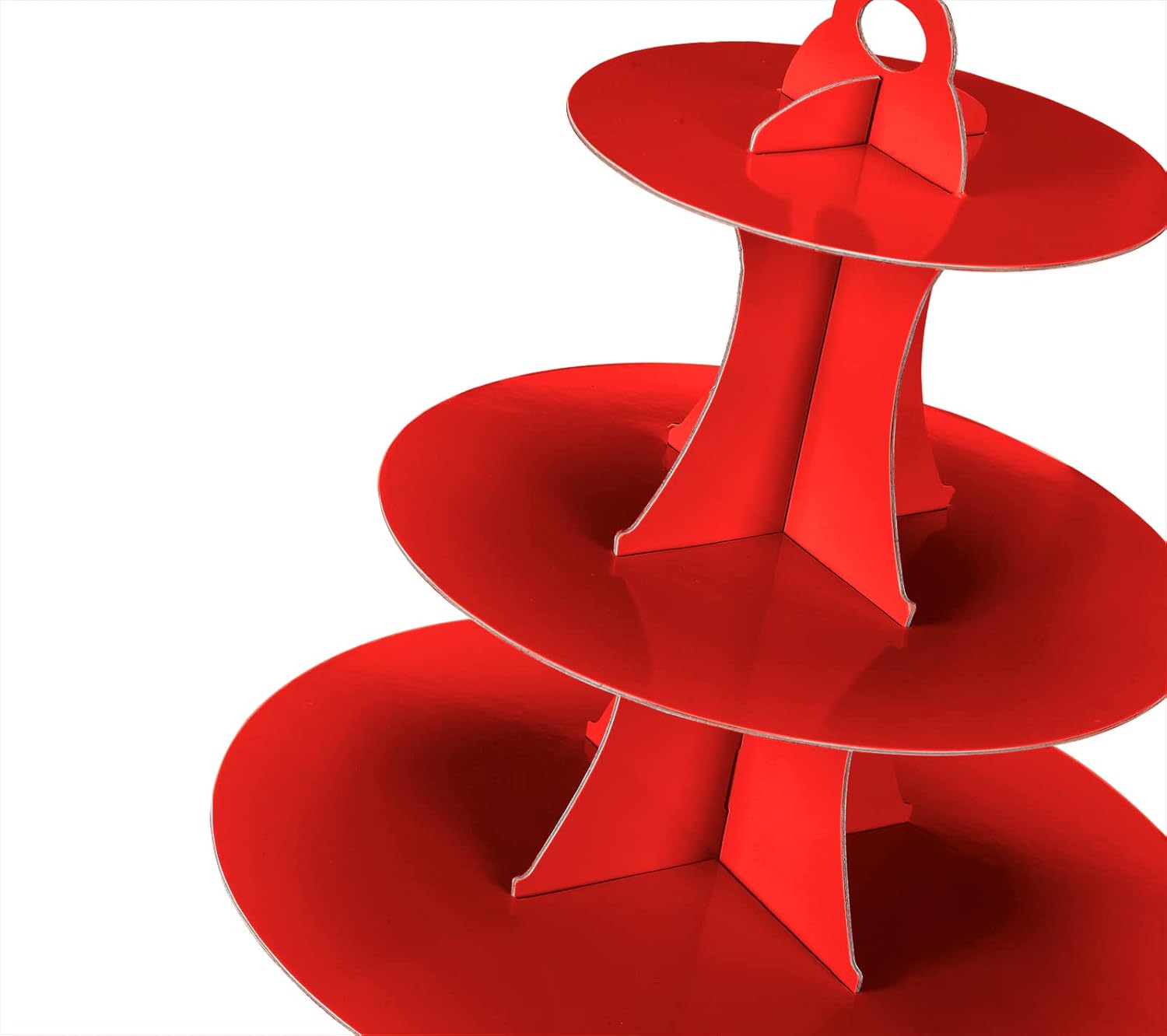 3-Tier Cupcake Stand, Cake Stand holder, Tiered DIY Cupcake Stand Tower for Dessert Table Displays, Birthday Theme Party Favors Decoration, Floral Tea Party, 12" W x 12.8" H, Red