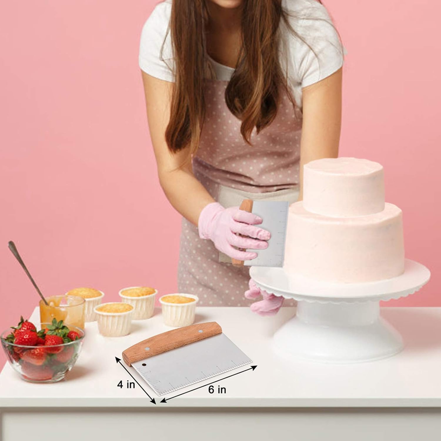 Bench Scraper Set of 2, HaSteeL Metal Dough Scraper Cutter Pastry Chopper with Wooden Handle, Heavy Duty Stainless Steel Griddle Scraper with Measuring Marks for Cooking Baking Grilling