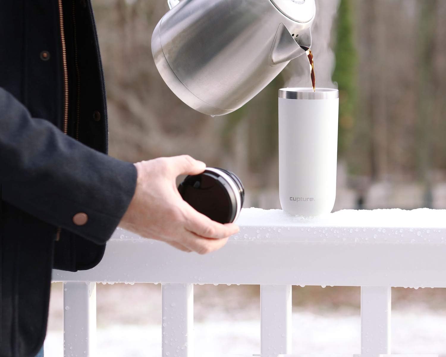 Cupture TWIST-TOP Vacuum-Insulated Stainless Steel Travel Mug, 16 oz, Winter White