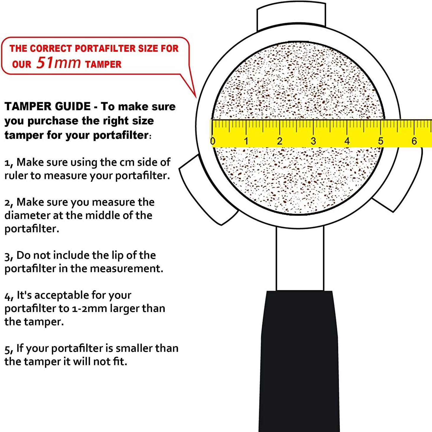 - PACKAGE: A wonderful 51mm Tamper. Weight: 354g/12.5oz, Height: 93mm / 88mm and Diameter 51+/- 0.3mm