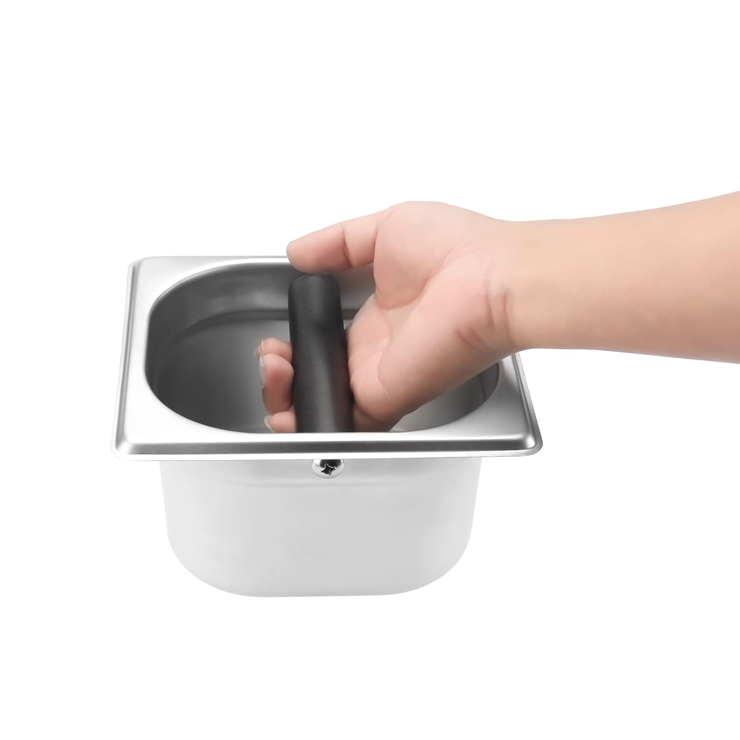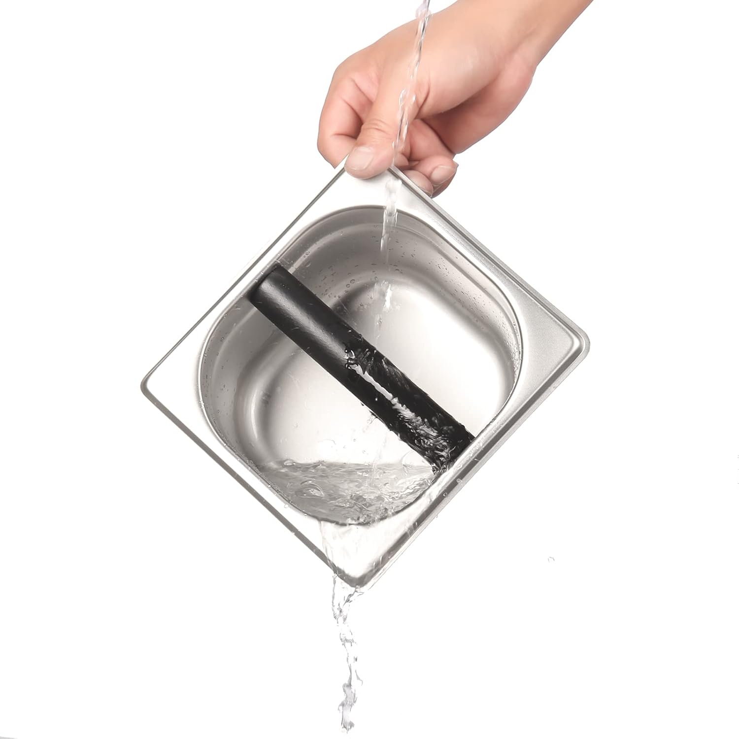 - DURABLE AND STURDY - Made of Heavy-duty stainless steel, the knock box is made for hard knocks. It can hold a medium volume of pucks with its 6.29 x 6.88 x 3.74 inch size and can be used on top of or recessed into a counter.