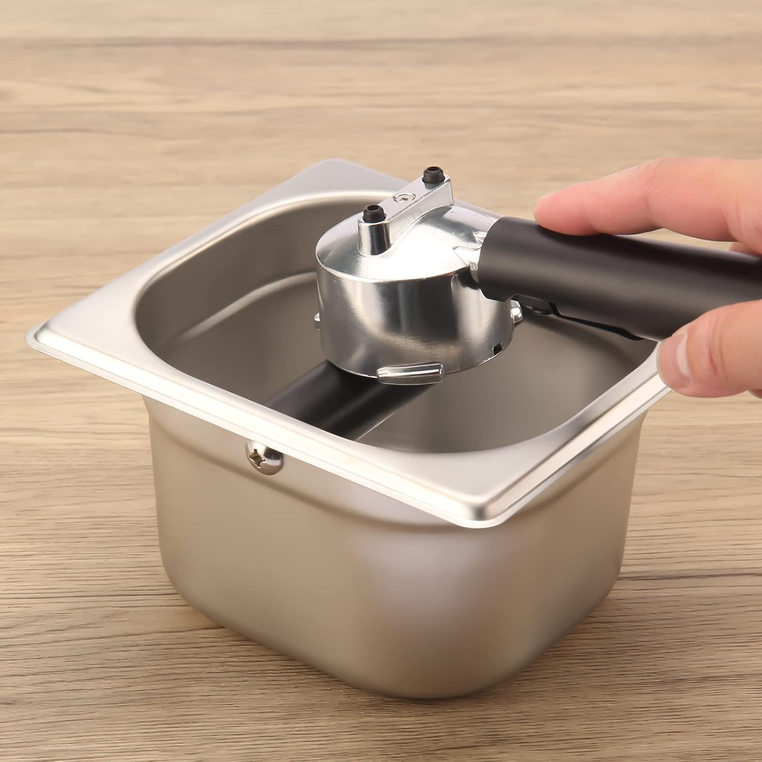 - EASY TO USE - A lip around the edge of the box allows you to sink the box into a counter top or espresso bar. Keep your counter area clean with this durable stainless steel knock box for dispensing all your spent espresso shots.